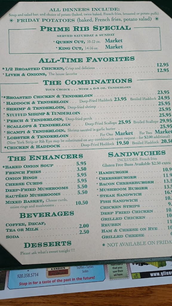 We celebrated my husbands birthday. The food was absolutely delicious! Prime Rib was done to perfection and Broasted Chicken was great not to mention the awesome soup and salad bar. Our waitress overheard us talking about my husbands birthday and brought him out a little birthday cake. She was the best! We will definitely go back again!