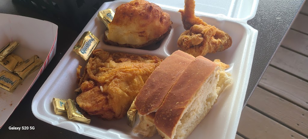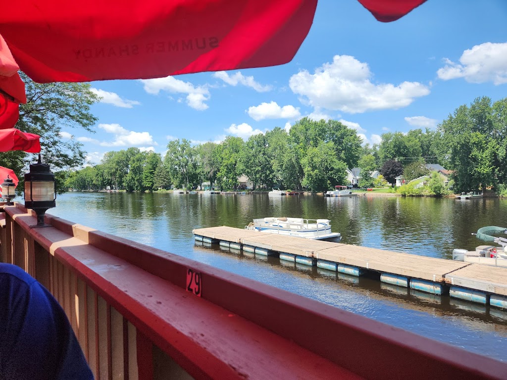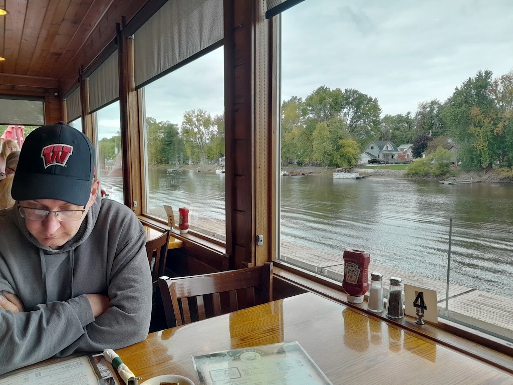 Had delicious boasted chicken on the deck overlooking the wolf river. Brought home plenty of leftovers!