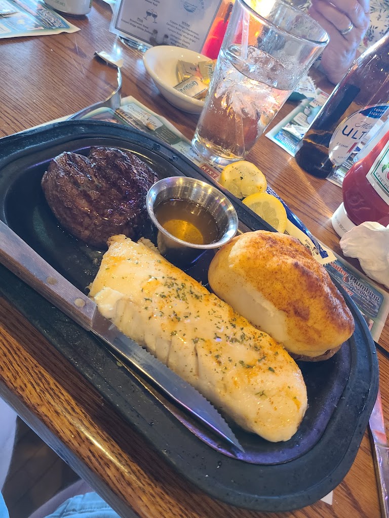 Great ribeye and salad bar. Nice atmosphere to take my younger daughter out to eat. Very friendly service. Will be back for sure.