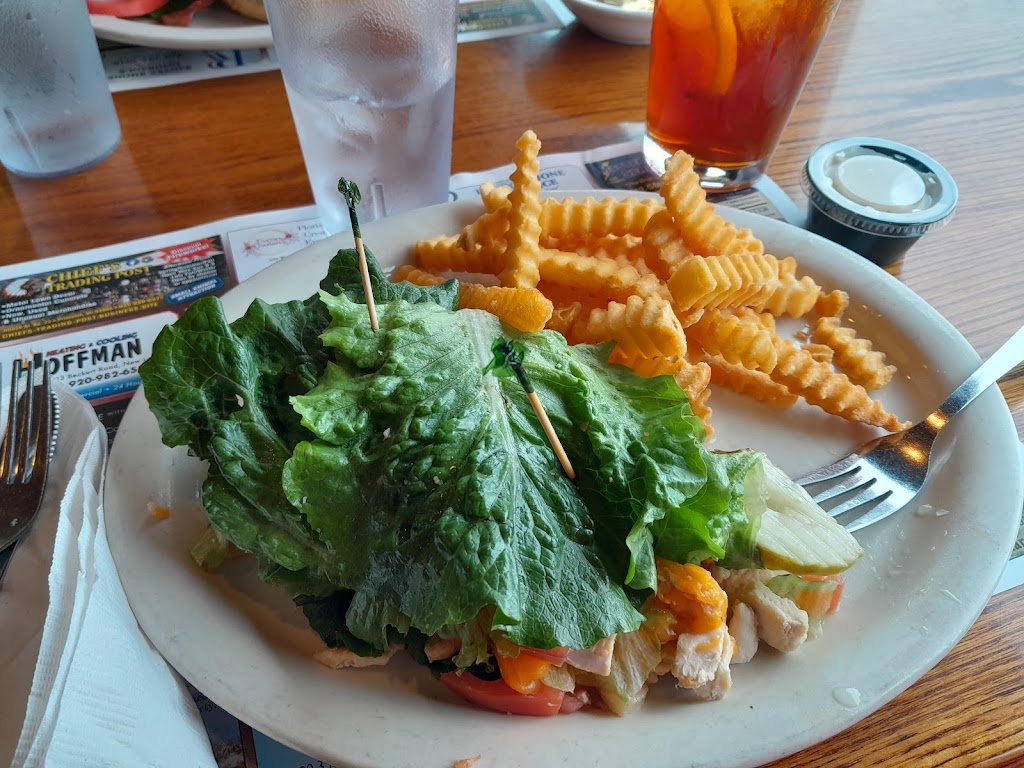 Nice place, great staff, good was ok. I'm not complaining. Burger and fries looked really really good but baked fish,c which I ordered, was little dry. Bread was good, salad bar was decent. I bet the fried fish was better but trying not to eat fried food. Baked fish can be a challenge though. I'd go back and get something else if we were in town again. Drinks were good.