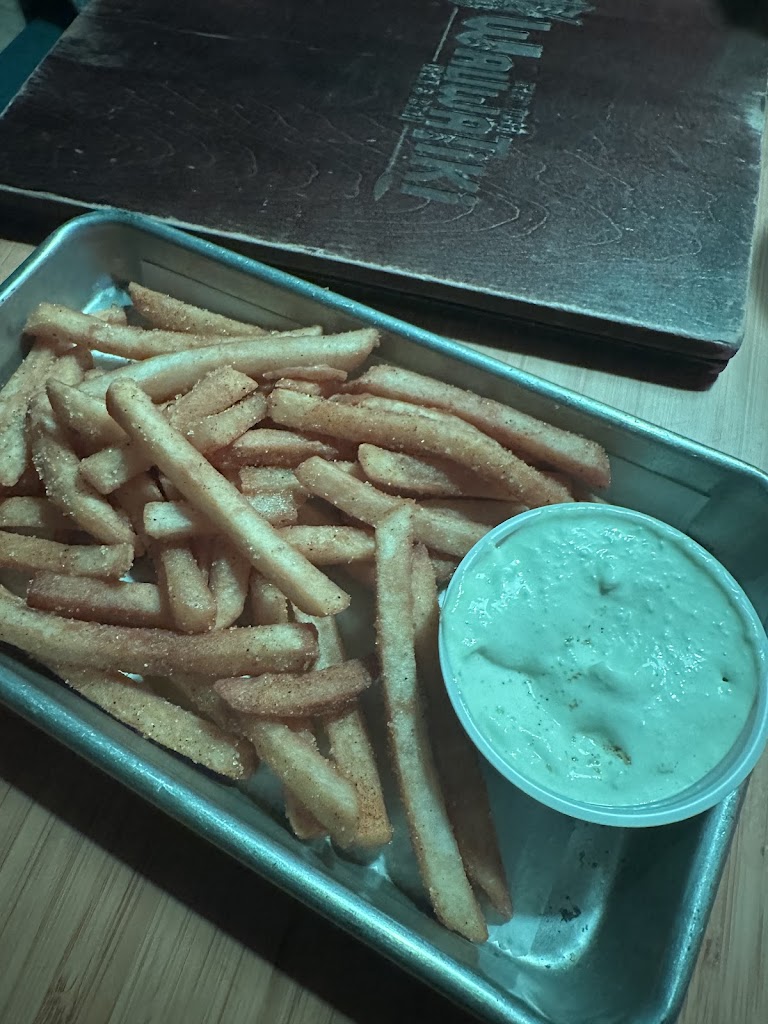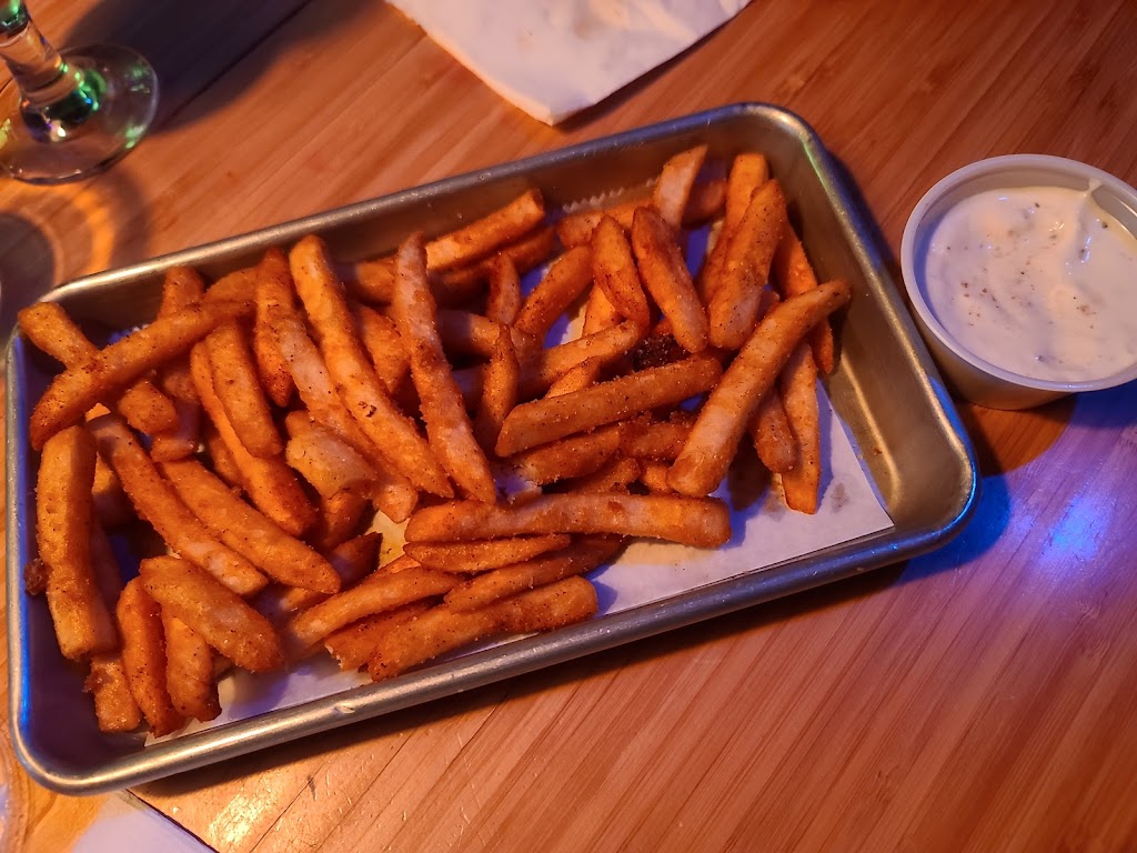The crack fries are delightful, and they have a good size cocktail menu. The atmosphere is great and the outside patio seating is nice. Some of those benches look like they could use some zjuzjing up, fresh paint & lacquer, but overall it's nice. Clean bathrooms, clean dining areas.