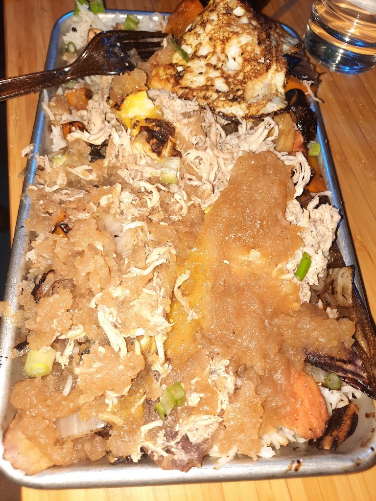 I am so impressed with this place. It was so nice to order from a menu I didn't have to modify. The food was amazing, we got the tiki burger (sub jerk chicken) and the Loco Moco. We had crack fries for an appetizer. The portions were huge we each took half home. Probably because we ate all the crack fries appetizer. The service was great and the atmosphere was so fun! We will be back