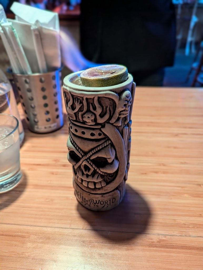 For our bill total($130 for four people) I'd rather just go to Ono Kine Grindz for authentic Hawaiian food, and then head down to Foundation Tiki Bar where the drinks taste just as good, have less ice, and you get to keep the tiki cup for the same price.