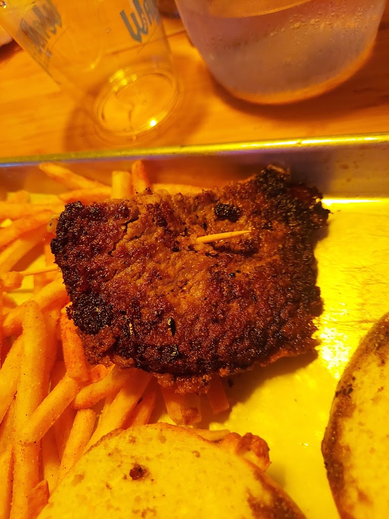 Burgers were converted to charcoal around the edge. It was not good. I just tore the outside of the patty off. All the meat was super dried out or/and burnt on our dishes.