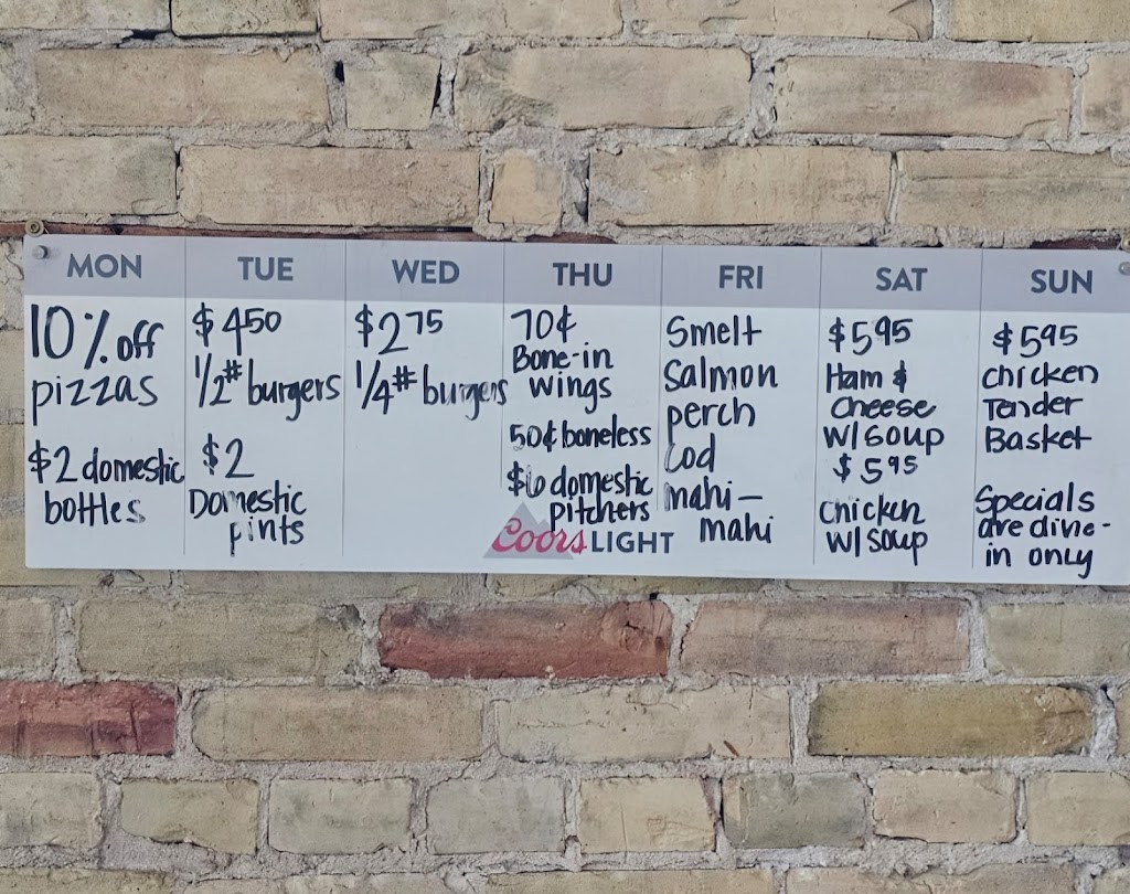 This is the best restaurant in Two Rivers for food and price. Great menu with lots of choices and very good price for what you get. Servers are very friendly yet also very professional. Many TV'S to catch the game as well.