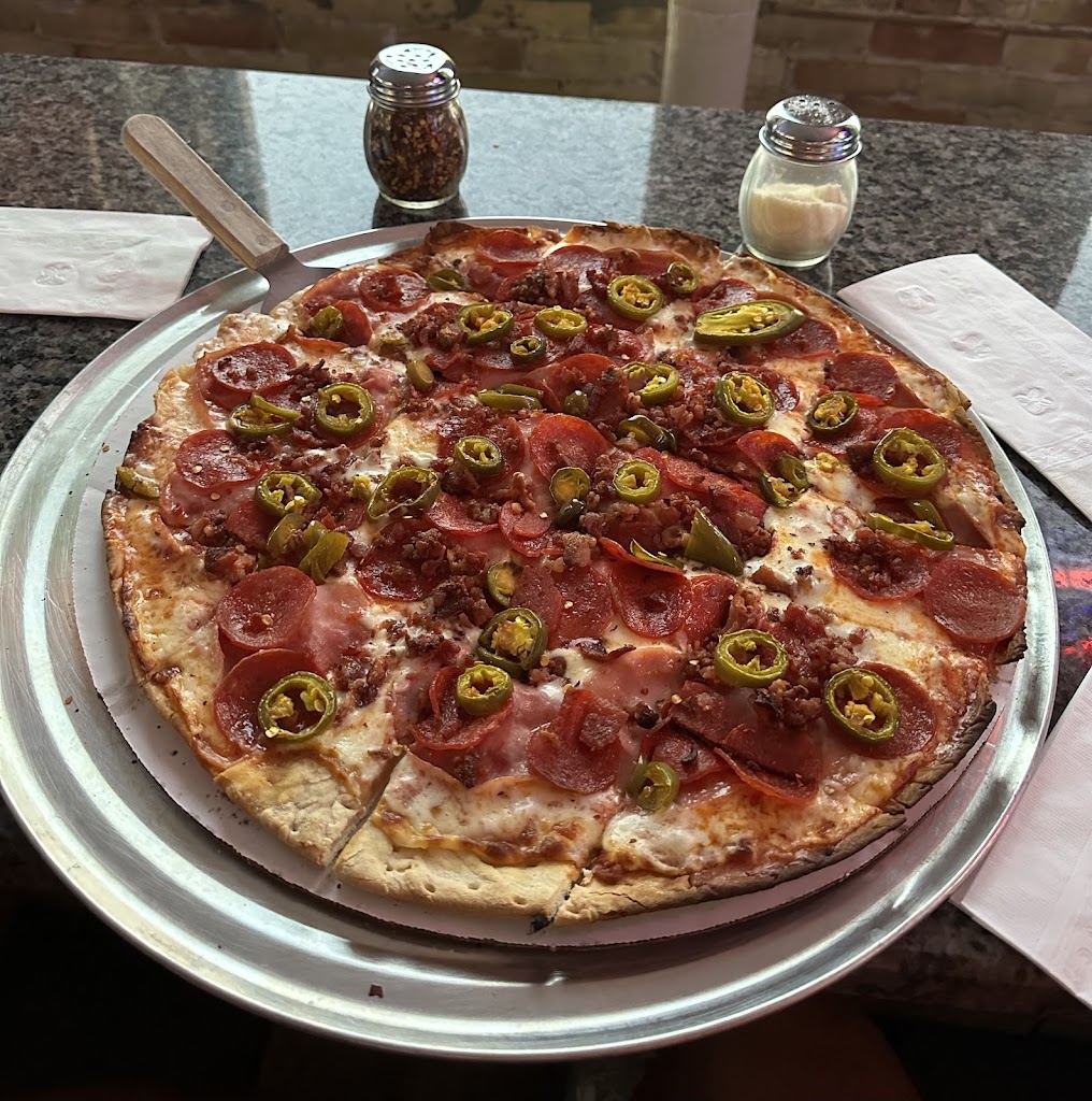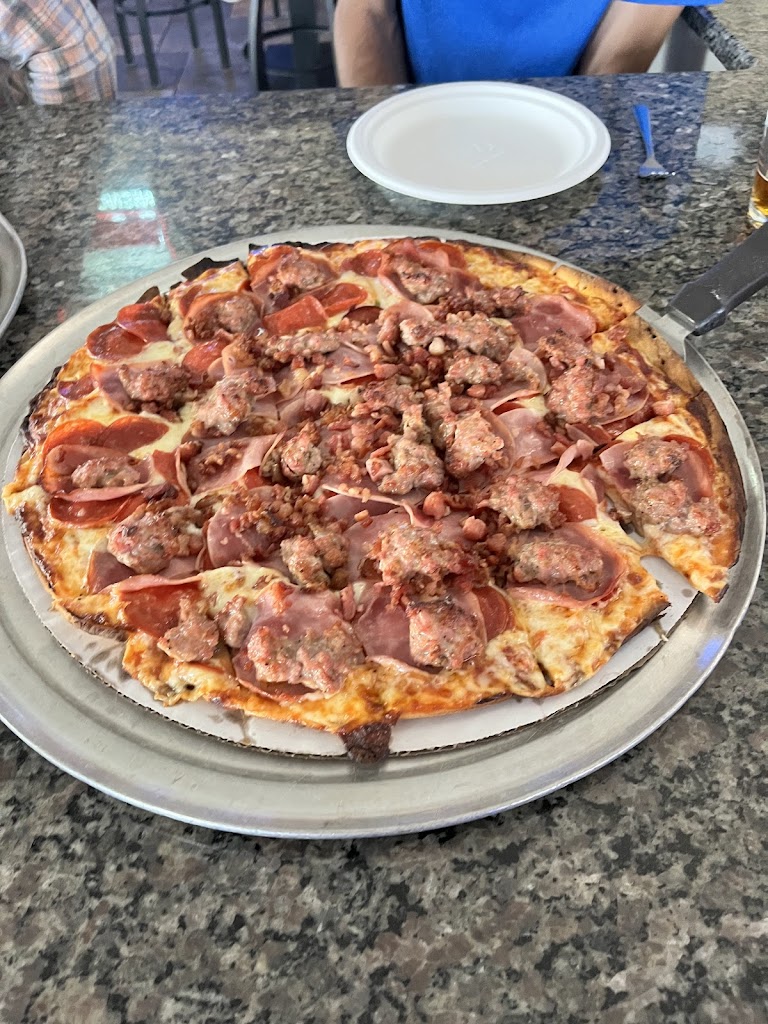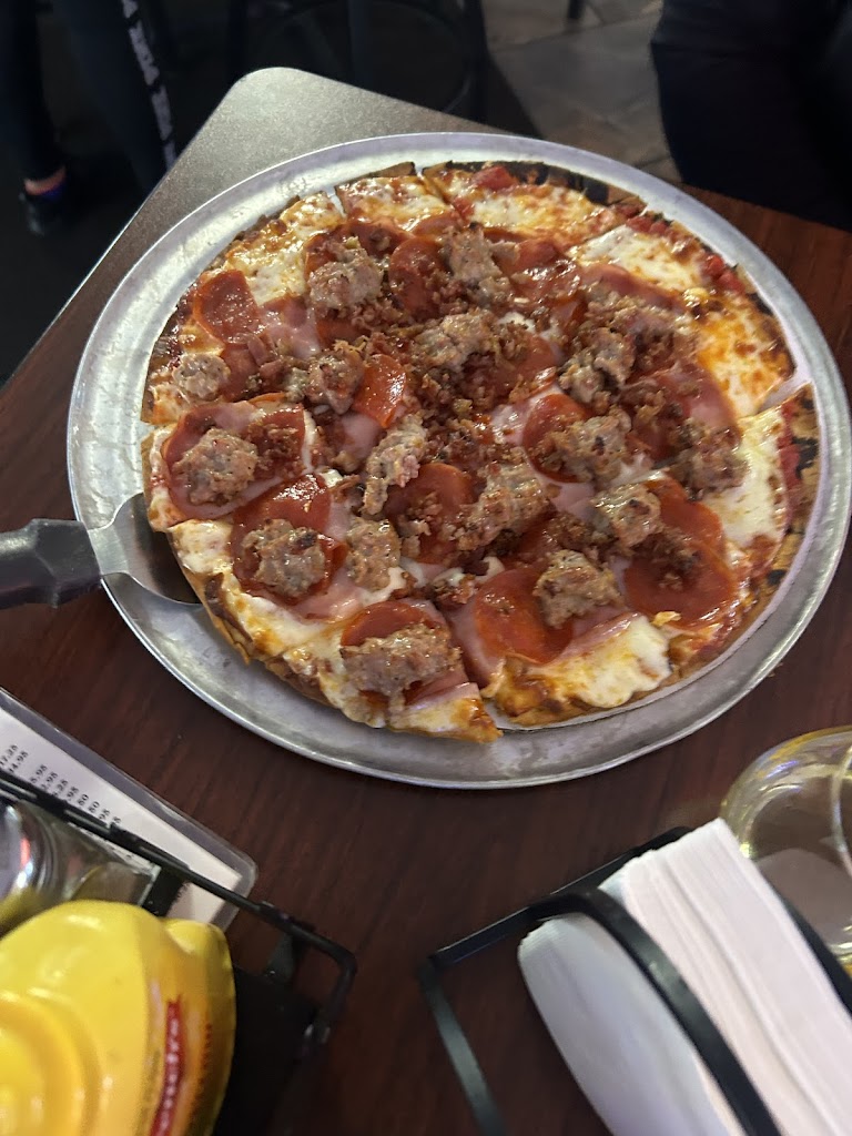 Any out of town ppl looking for a good pizza place, this is it. I’m from Texas and saw this place across from the hotel. The pizza is worth the wait and the wings too. Both hitting the target on flavor and size. When I’m back in town I’ll be stopping by for sure.