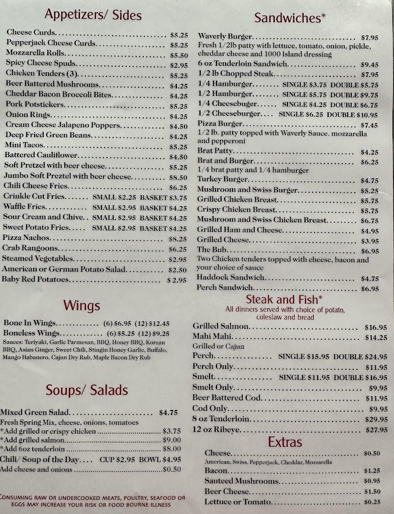 Upon arriving to Two Rivers, Waverly Inn was recommended as a must! It did not disappoint! The biggest tender perfectly seasoned Buffalo styles wing I’ve ever tasted. Service was warm and friendly! Thank you for a great meal!