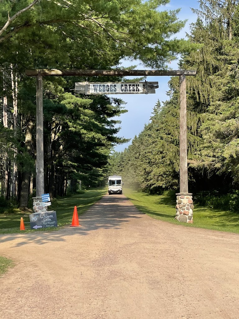 My husband and I drove with our 18' camper to Wedges Creek to be somewhat near to our daughter who lives in Eau Claire. The reviews were excellent so we thought we would give it a try. The reviews did not disappoint...easy camping spots, good brick oven baked pizza, good music, very nice shower room, easy in and out! Owner Jeff is super nice and he has many visions for his family owned land that has been in his family for many years. If we are in the area we would definitely go back!