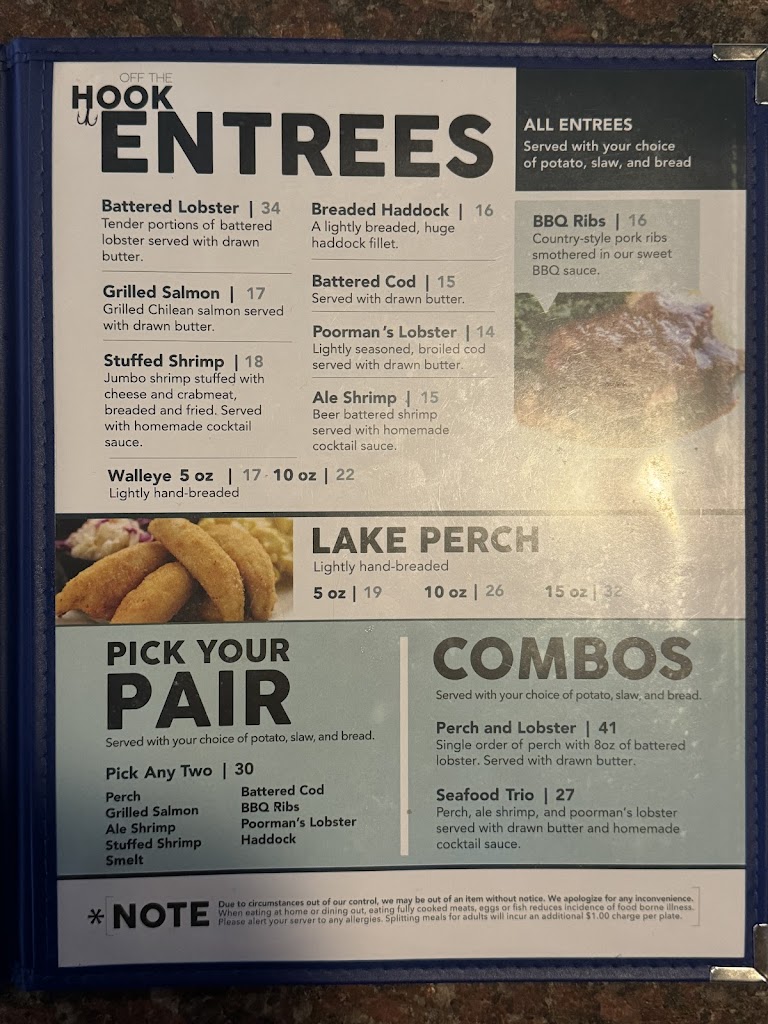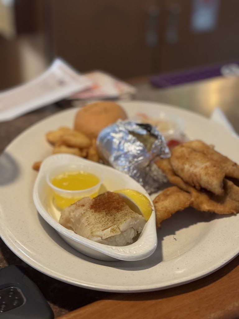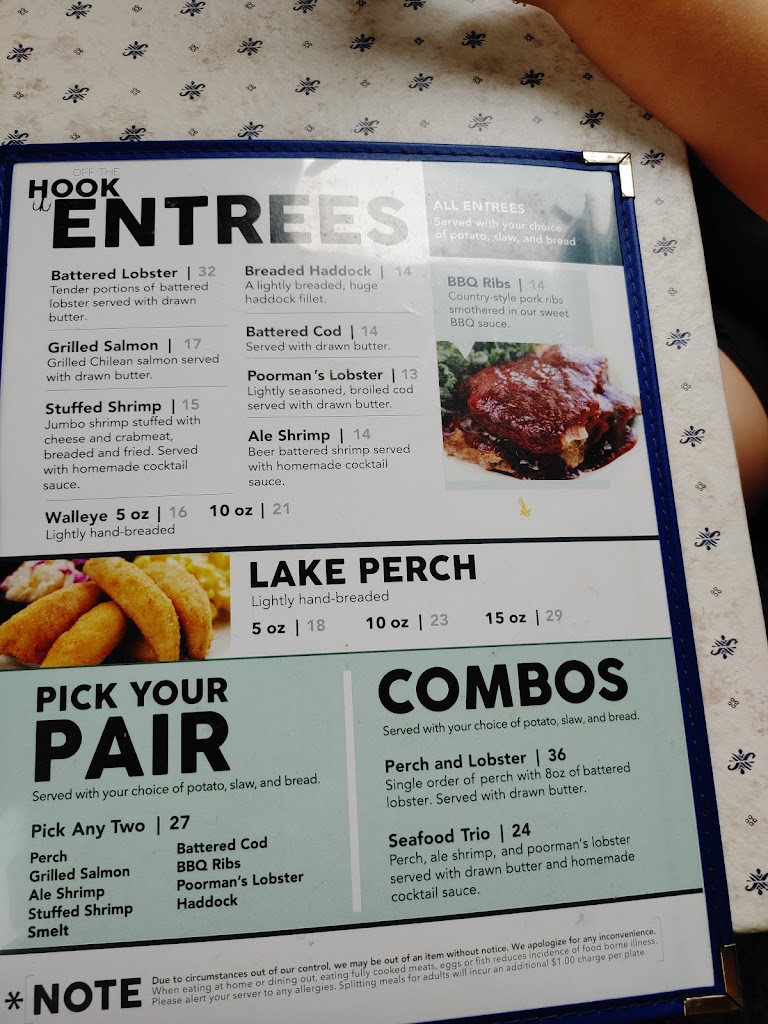 The Prices weren't very cheap, which is expected at a super club so that didn't phase us initially. I ordered perch and my husband ordered half poor man’s lobster and half cod. The lobster was chewy, dry, and fishy, while the breading on his cod was soft, no crisp, and very bland.