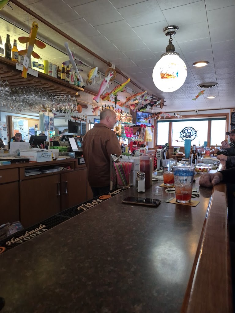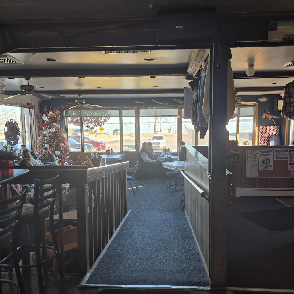 Old time bar/restaurant on the lake. They offer perch most days (not just Friday). Broasted chicken on Sundays, Prime Rib on Saturdays. Outdoor seating on the lawn during the summer. Good drinks and good food. Ample parking.