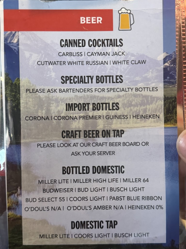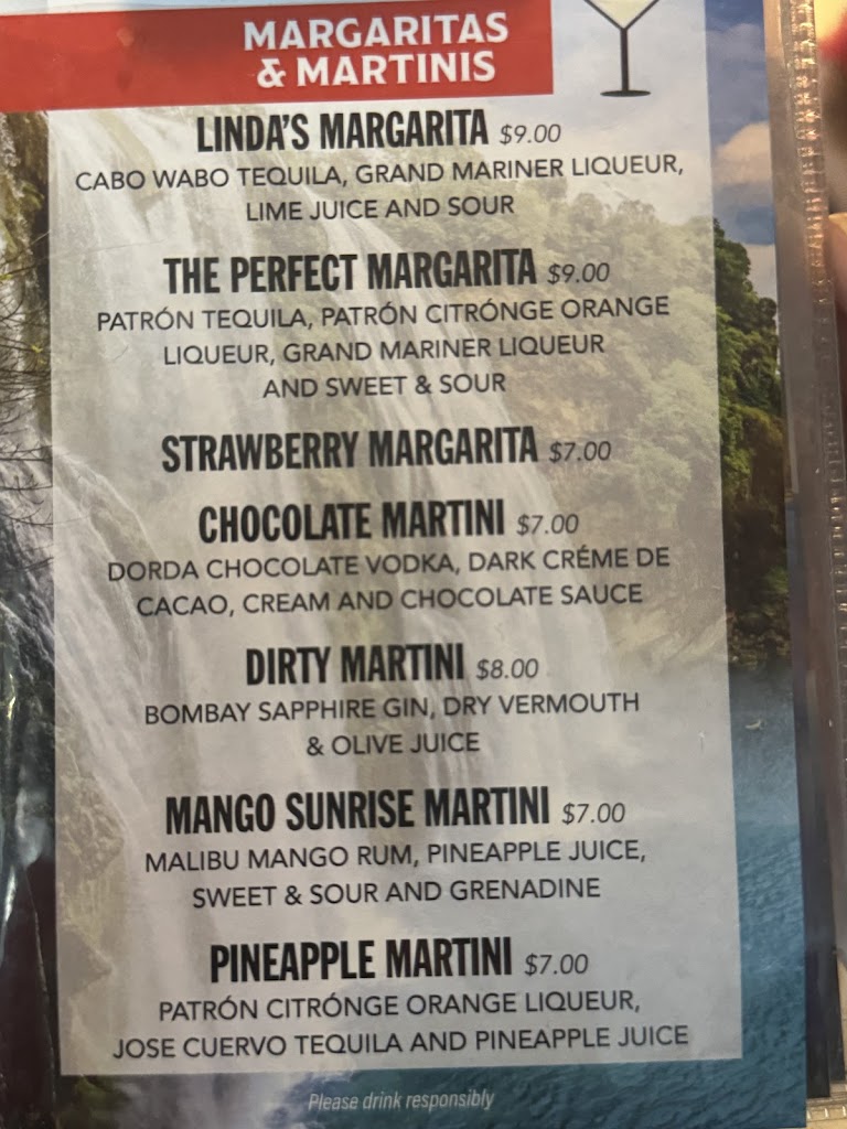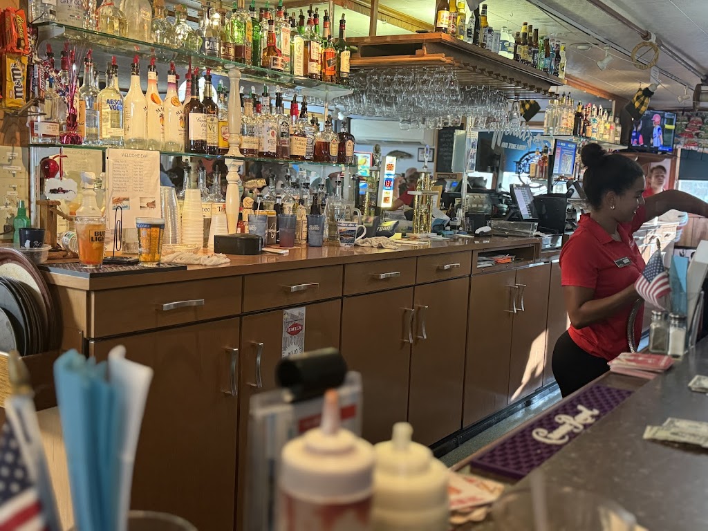 It took too long to get our drinks, and I ended up going to the bar to get them. the bartender was very standoffish and did not acknowledge me with any sort of friendly greeting. He seemed as though he would've rather been anywhere else. Eventually we did get the drinks and the waitress took our order.