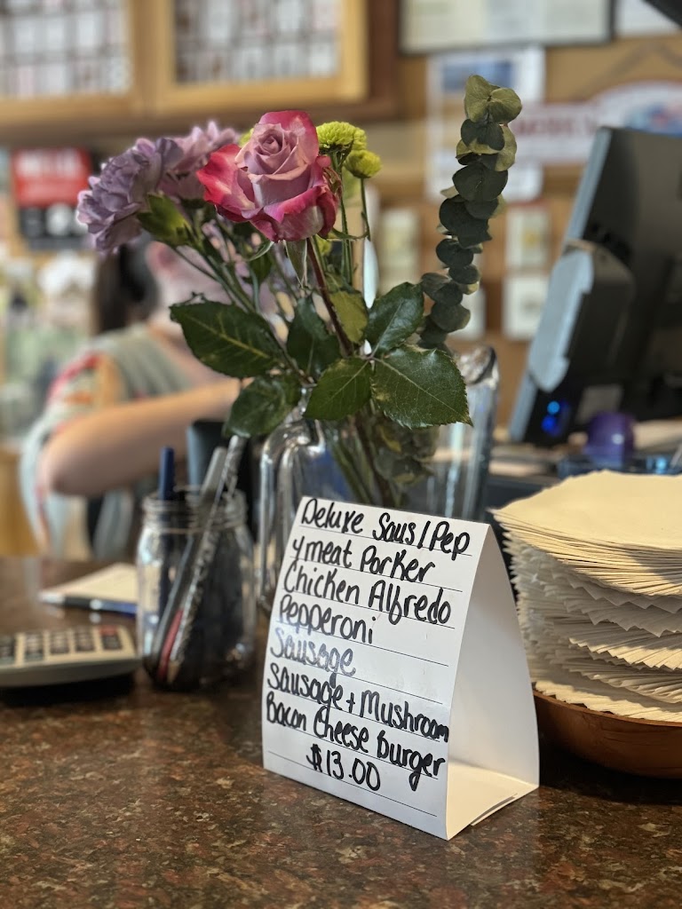 When we first walked in we were greeted by a friendly young lady who sat us quickly. No complaints there. But when seated it took a while to get help. They were busy, we understood. When the waitress did come she was friendly and joked around with us. The dining room itself was uncharismatic, the rubber flowers on the table were..something on top of a very old and sticky feeling tablecloth.