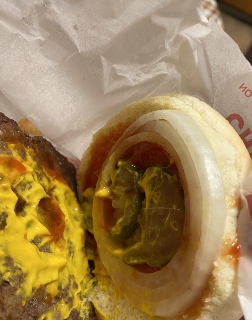 * Kid toasting the buns was not wearing food safety gloves, makes you wonder if they handle all the food with bare hands
