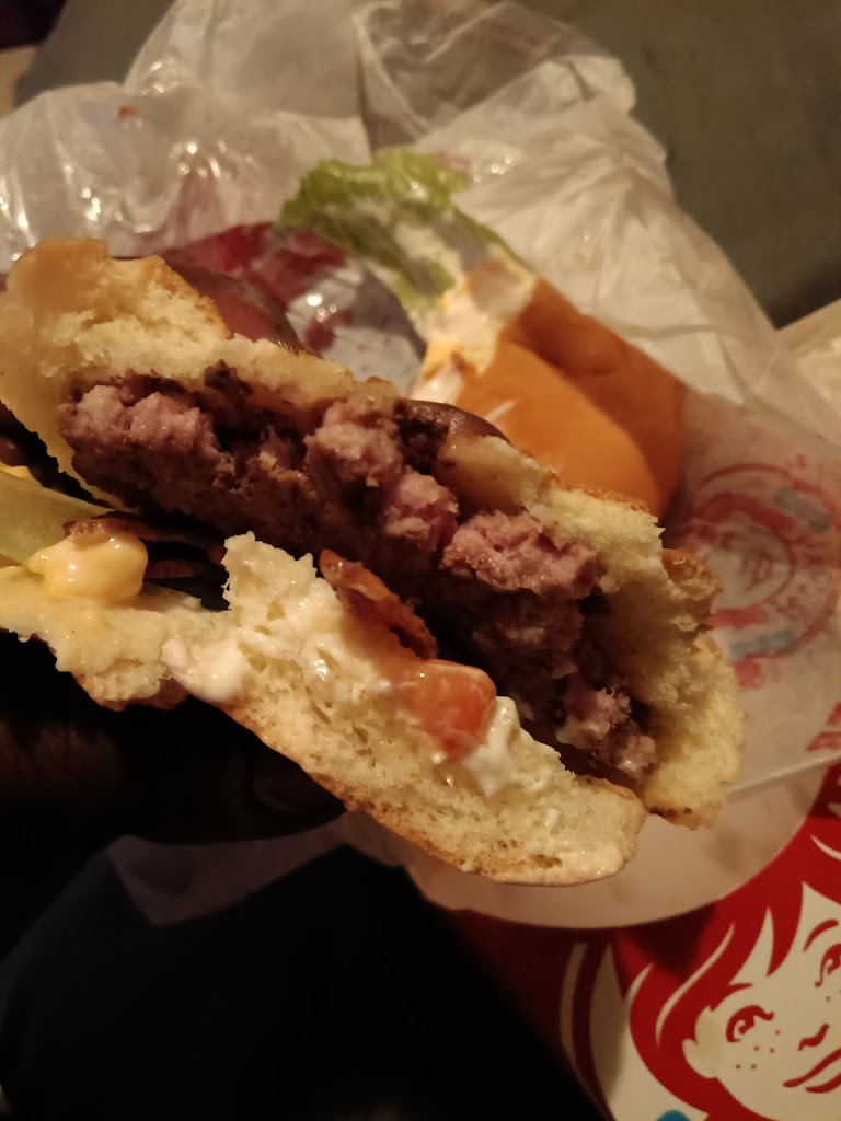 I do have to say this Wendy’s is seriously impressive. We pull up around 12:05 there’s about 4 cars in front of us. 12:15 no movement. 12:30 still, no movement. We begin to hear some intense honking and two workers come out. The guy ordering fell asleep in his car while ordering. Okay no biggie I understand, if you’re tired you’re tired right. Line moves up we’re waiting for another good 10 minutes before we get to the window to retrieve our amazing food. We get handed our iced tea, have a nice lil convo w the guy working, pay, and then wait. Waiting. Waiting. Waiting. 10 more minutes go by. No one in sight. 5 minutes later one of the workers is spotted. We thought it was for our food. Wrong. He was getting a little refresher for himself. Completely understandable. Another 10 minutes go by, we finally get our food. Burger was nice and room temperature, and fries were nice and cold with no salt(just how I like it). I do have to say I was so impressed. I never knew it was possible to spend almost a whole hour in a fast food drive through. Thank you to the Wendy’s staff, the guy who fell asleep, and everyone else who made the experience possible. I will definitely be back when I have nothing to do for a few hours.
