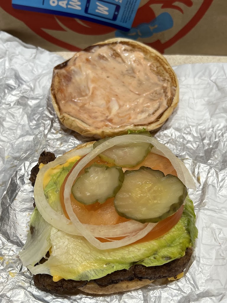 The food was ok but I was disappointed in the service and overall cleanliness of the store. The ice machine was broken and the clerk didn’t offer to tell us until after we ordered that we had to give him the cup for ice. The wall by the soda machine looked like it was being painted or repaired but was incomplete and did not look professional. I went to take the survey to get a free Dave’s single and no restaurant code was provided. Will not be back unless there are changes.