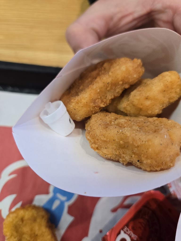 The soda wasn't very good. Nuggets were barely warm and not very good, and the fries were floppy, undercooked, and cold.