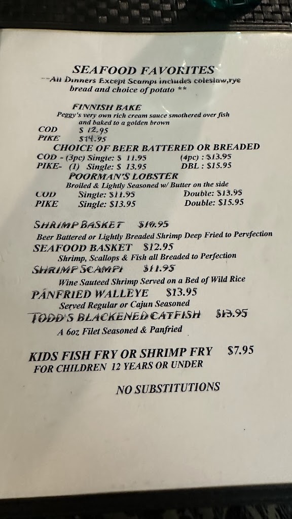 We ordered the pan fried walleye and the breaded cod - not the beer bartered. The breaded was probably a lighter batter but was still a batter. We thought it would be more of a crust type coating. It wasn’t but it also wasn’t a disappointment. It was very good. It almost had a fresh water taste.