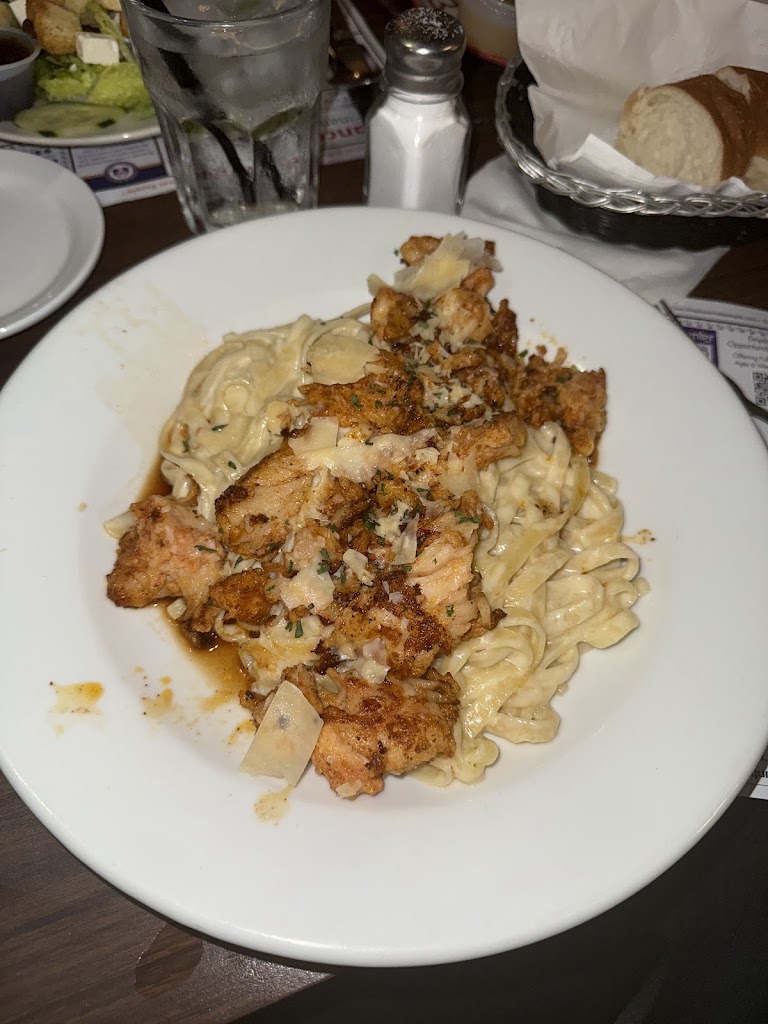 The food was good but the service was slow. Not too busy but we got our drinks after we got the salad. The drinks should come right away. Drink order should be taken first before ordering food and she asked drinks at the end of ordering