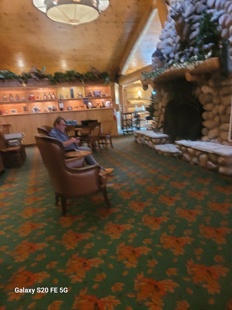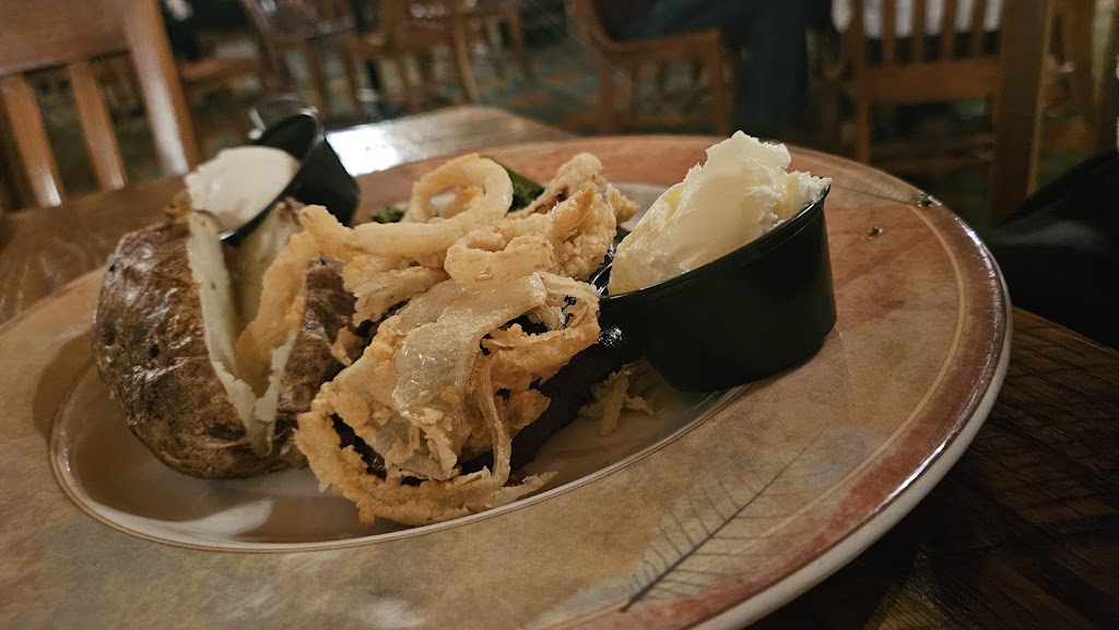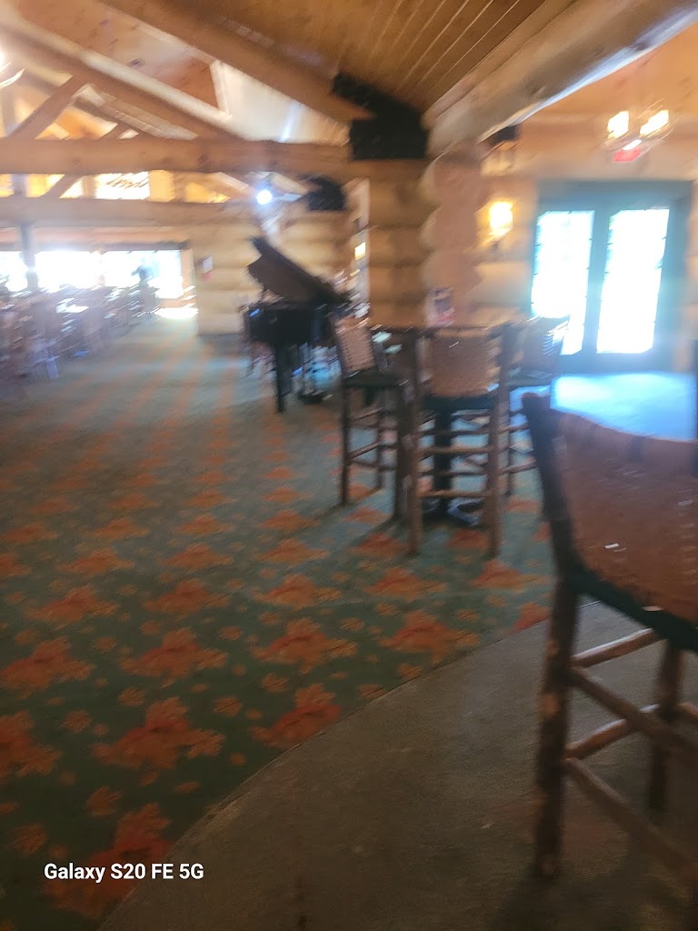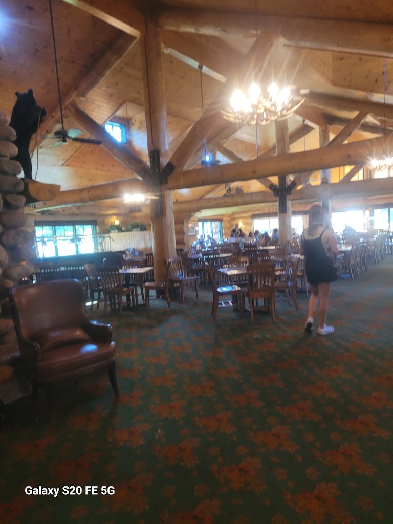 It has the log cabin look that's fantastic and the food is terrific. I had the Prime rib Wife the roasted Duck very good.