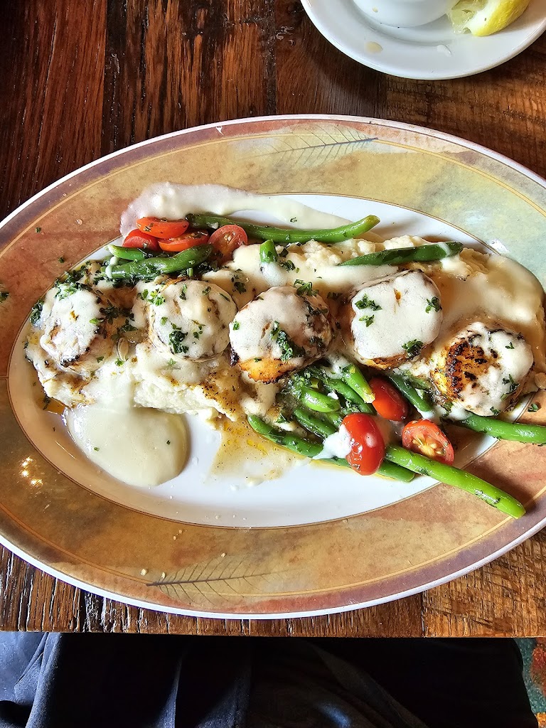 Ordered Rosetta shrimp with mixed vegetables; terrible, 4 pcs shrimp overcooked rubber, got corn in cream sauce & 2 cherry tomatoes cost $32. Seafood platter with 2 “rubber shrimp” 2 scallops size of nickle 2 pcs tiny haddock cost $38.