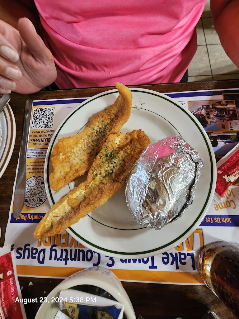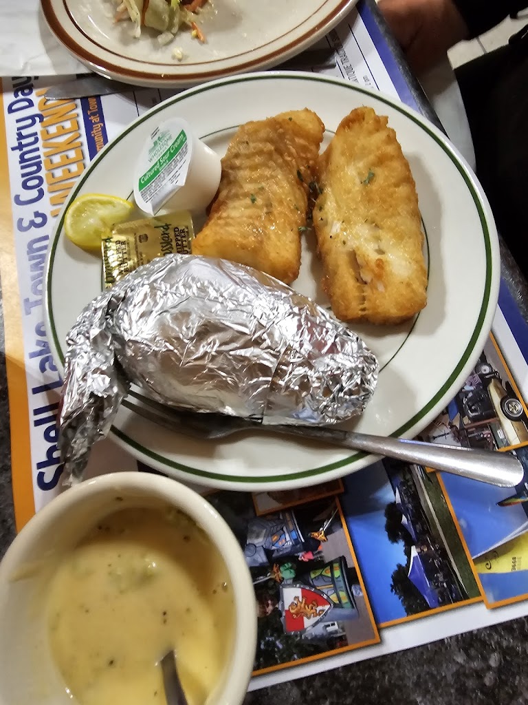 Went for the Friday night fish fry. We all had something different. Cod, perch, walleye. Salad bar & soup, drinks, were great! Staff is very friendly. Very clean. Will be back. Great stop off the path. 8 23 24 everything was great!