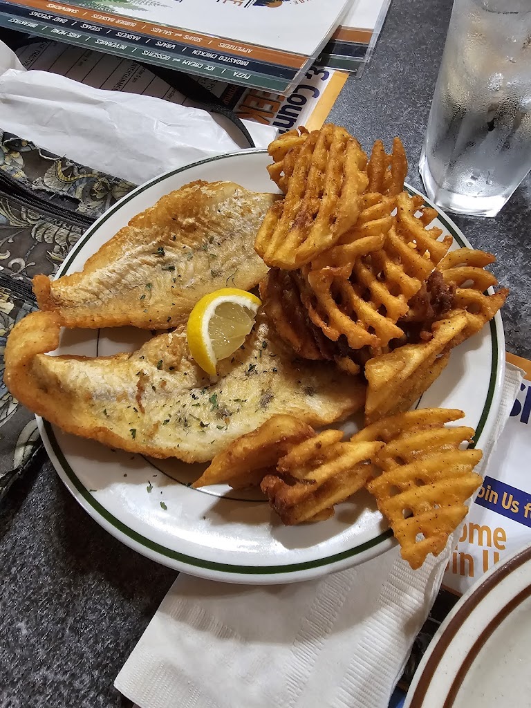 Great fish fry with multiple fish choices and a great salad bar with soup. Great place to take the whole family!!