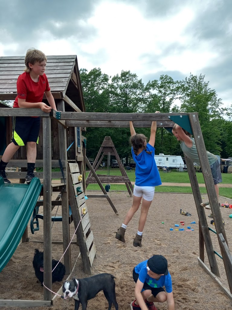 Very nice campground with friendly atmosphere. Food is outstanding and excellent prices. Had lots of planned activities for 4th of July celebrations. Fireworks were the best. Excellent place for kids with large playground. Mostly permanent sites with a few temporary ones close to the bar/restaurant. Very clean and well kept.