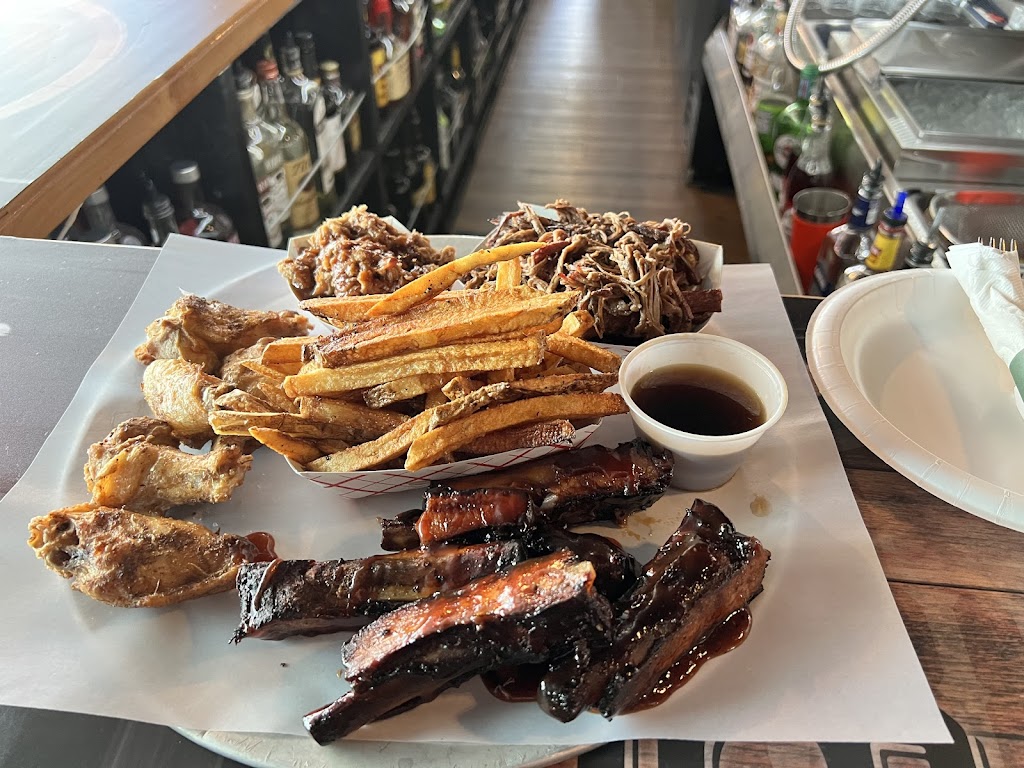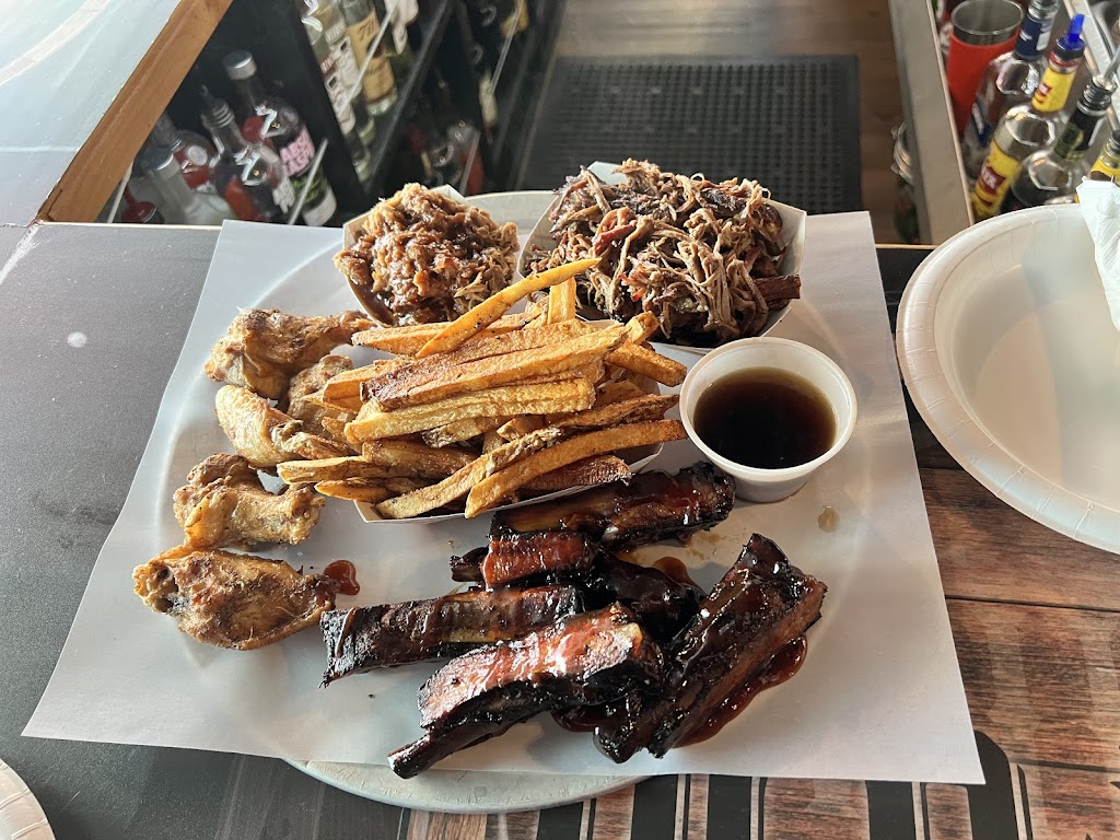 Smoked wings are excellent. Burgers are good and large portion. Smoked brisket and combo platter are very good. Ribeye sandwich was gristly and overcooked.