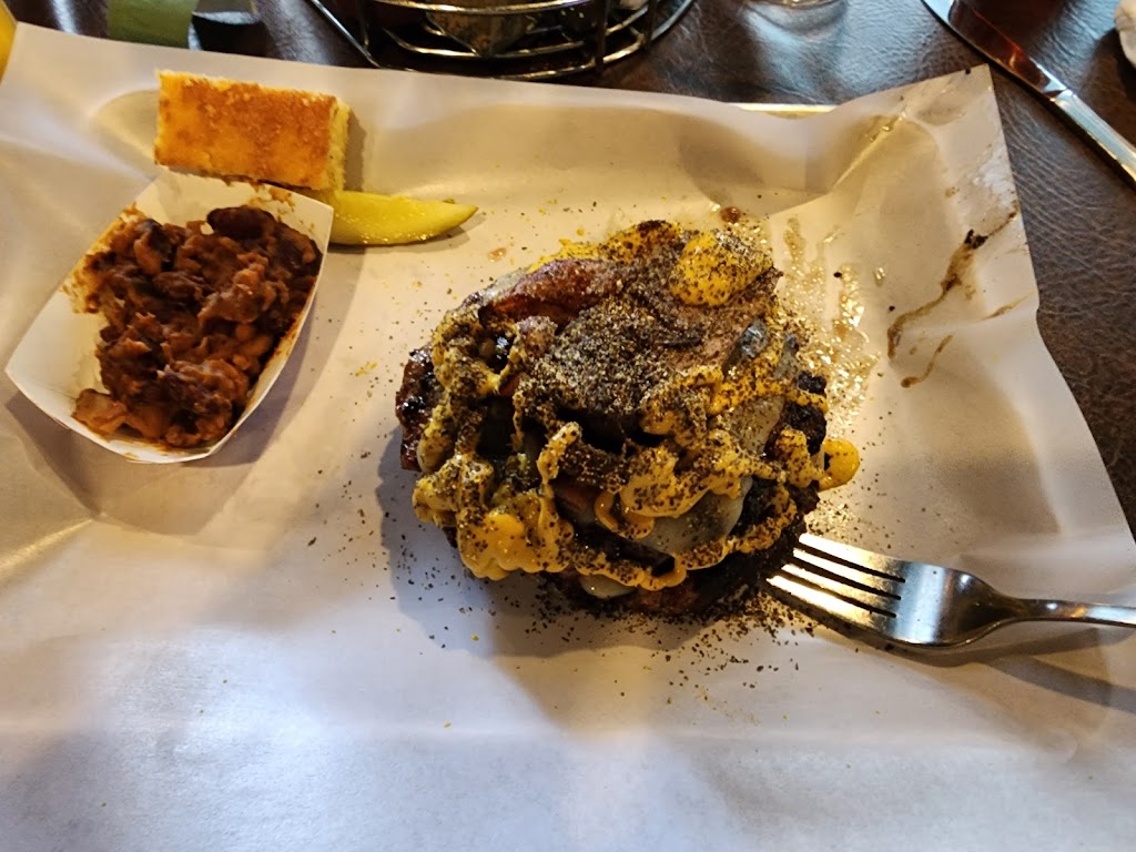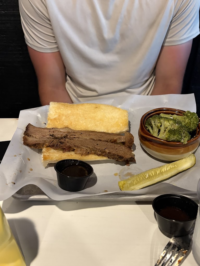 Pit master should know dry brisket when they serve one. Seriously couldn’t cut it with a knife. I should have known when it was served with au jus. Place was kinda dirty. Server was very nice and offered to send it back but I never trust that decision. Overly confident to command the prices for that food. Salty too.
