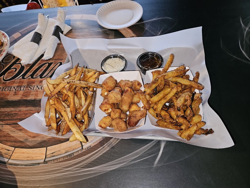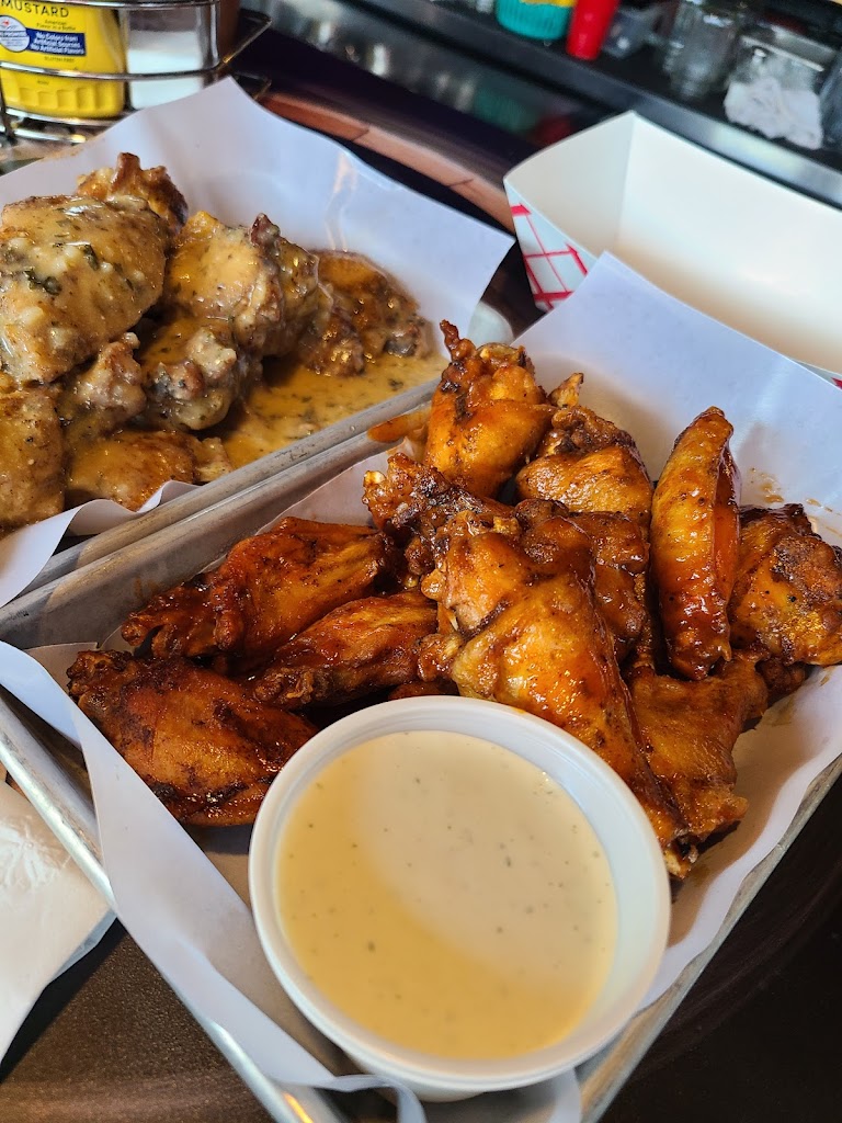 We came in on the 4th of July to escape the heat after parade. Bartender was hilarious and ran the whole show solo. My husband had his favorite bone-in wings and they were smoked to perfection which was unexpected. I got a bounty 2 pc fish platter Cajun style. It was all delicious!