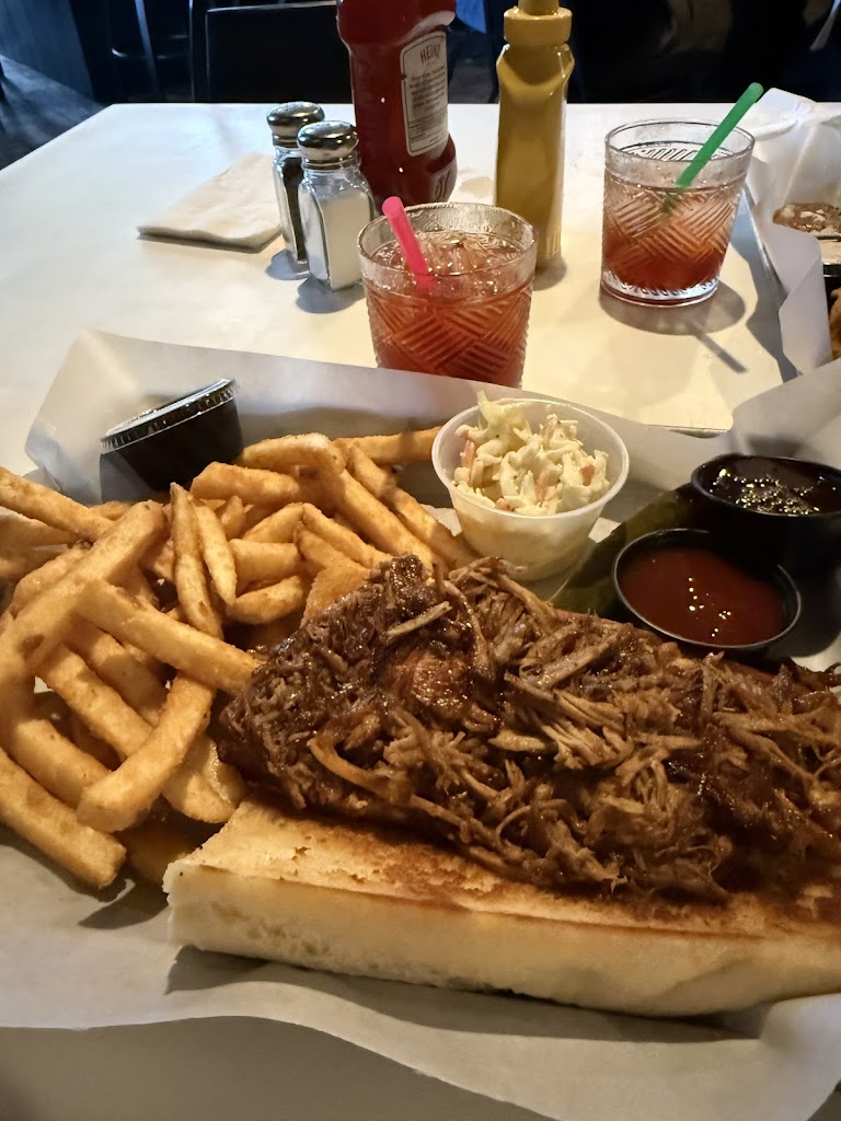 We love the food and drinks here. Staff very accommodating. Enjoy coming here. The point root beer on tap in a frost mug was delicious. Different beers and cocktails are good too.The sampler is awesome. You get grilled chicken wings, brisket, fall off the bone ribs barbecue, sausage and lots of fries for $30. Very delicious!