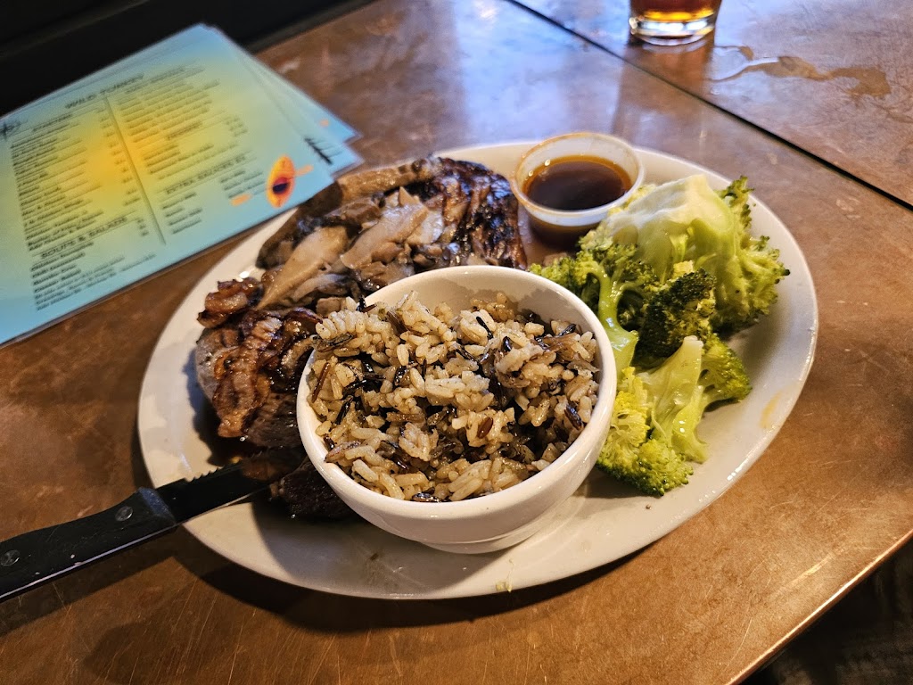 Have been coming to Conover for 35 years, and never stopped in while it was Wild Turkey Smokehouse. When I saw they rebranded themselves as a steakhouse and advertised as “the best steakhouse in Conover”, I couldn’t help but try it (fyi they are the only steakhouse in Conover). Went in with low expectations, but honestly everything was really solid. Pizza was great, the wings were incredible. One person in our party got the baked haddock, another a steak, everyone loved their food. They were pretty short staffed, but that’s true for all the restaurants in the area, so I don’t really hold that against them. We ended up eating there or carrying out multiple times on our trip. Bonus points for being open every day, which is a rarity up there. Kicking myself for never having tried it sooner!
