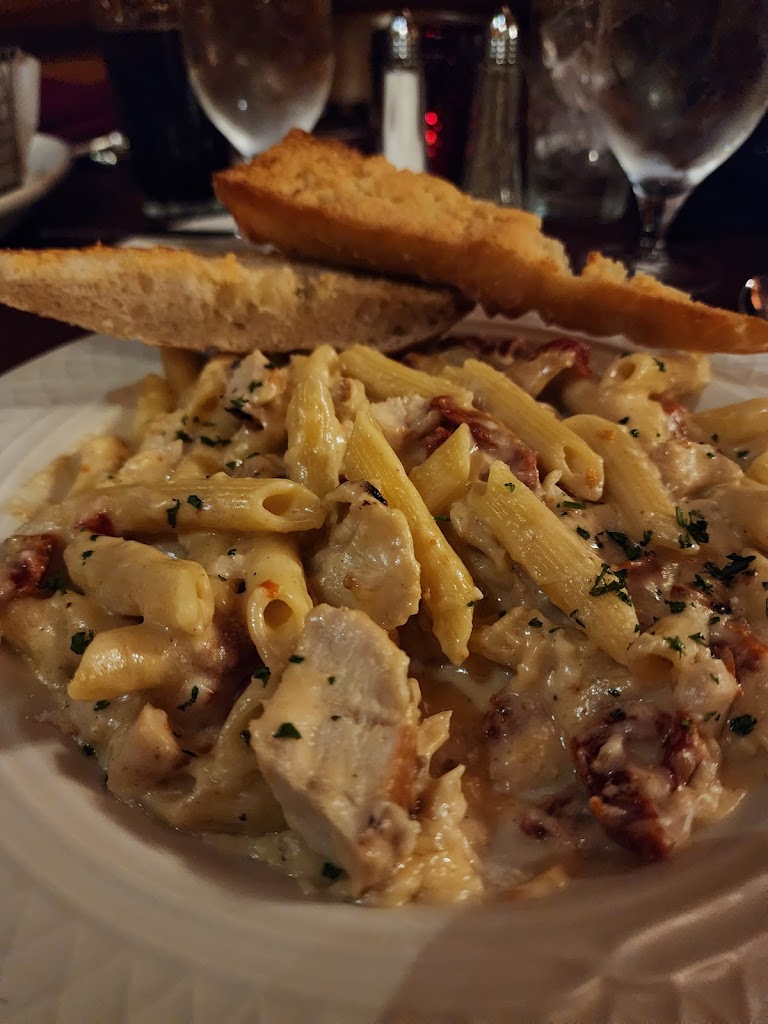 Nice atmosphere. Beef tips and noodles were burned and salty tasting. Was with a larger party, so I did not complain. Kinda expensive, but I expected that at a restaurant as nice as this.