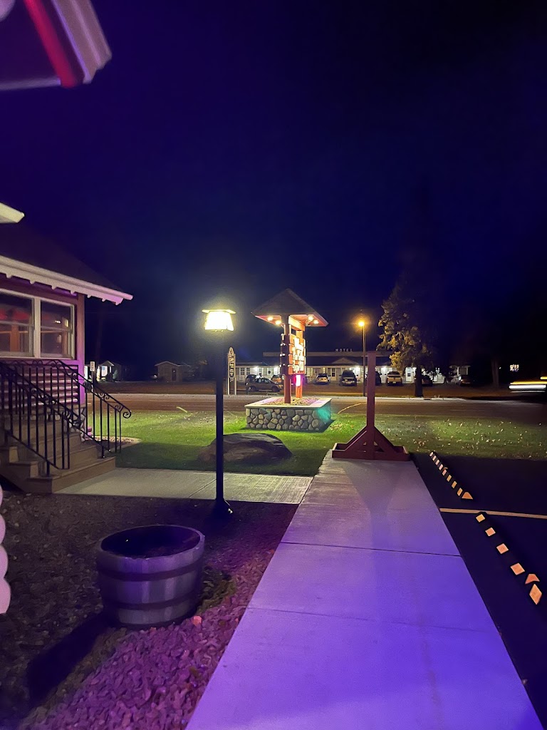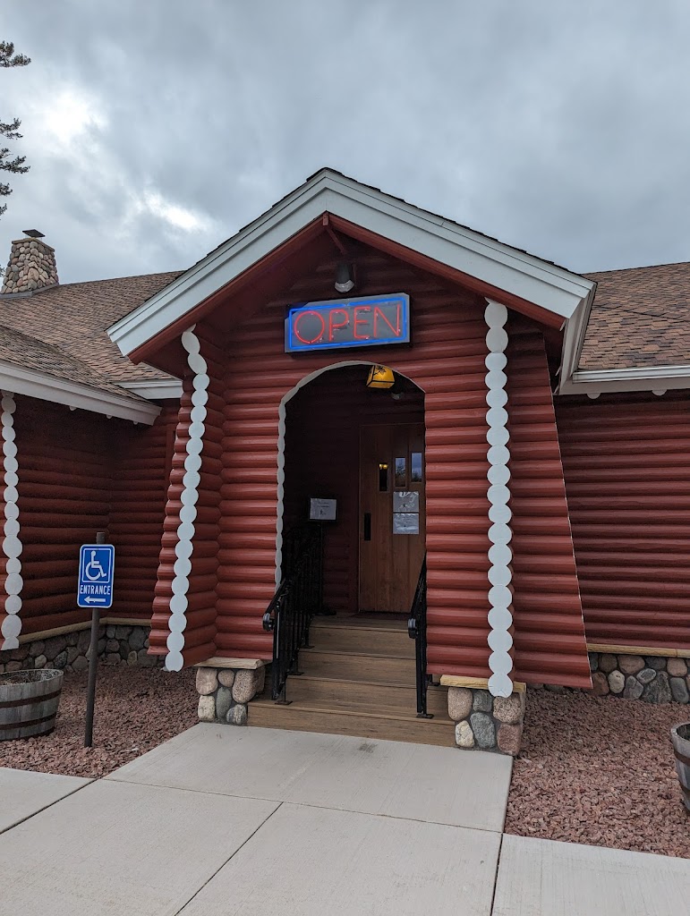 Clean, cozy Northwoods log restaurant with great food and prices. Very friendly staff. Nice bar. Excellent rolls. Side salad was fresh, good and quite large. The rack of lamb was excellent.