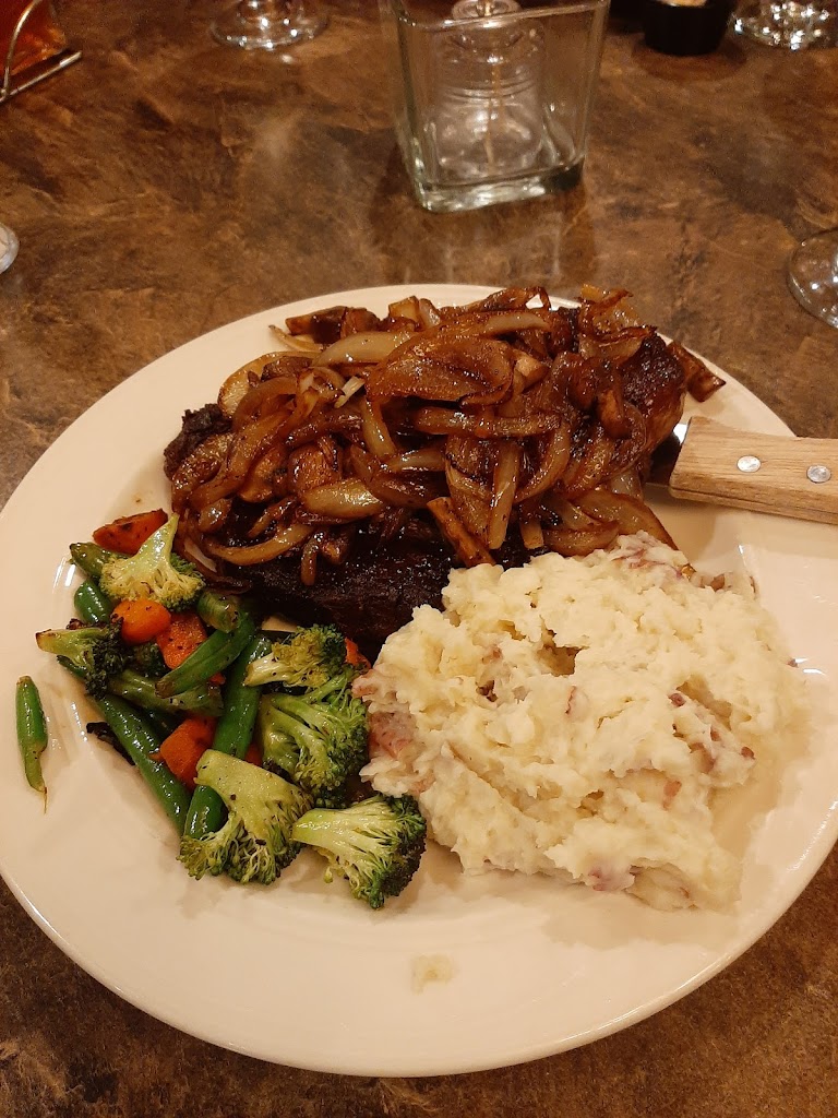 For the price of the steak it was quite average. Comparble to chain steakhouses. Charged me 3$ for onions and 3$ for mushrooms on steak. Fries bland as well. No mention of these toppings prices on menu.