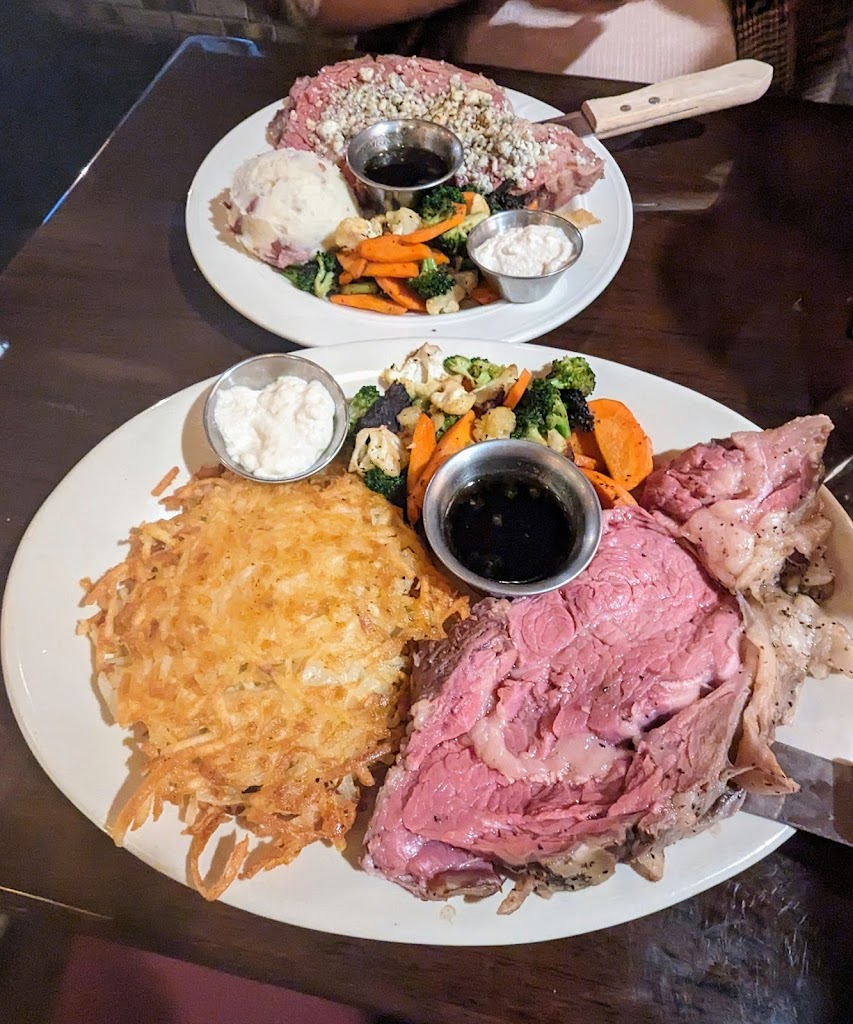 Prime rib and rib eye were fantastic. Our waitress was wonderful. Great experience.