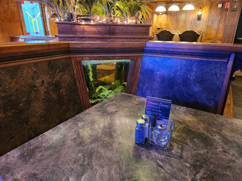Solid supper club and roadside inn. We didn’t make it for the prime rib night but had a nice casual meal at the bar consisting of the ribs special, chicken Parmigiana, salad and the fried duck, bacon and cream cheese. Che knight the corner seats in the bar with built in fish tank.