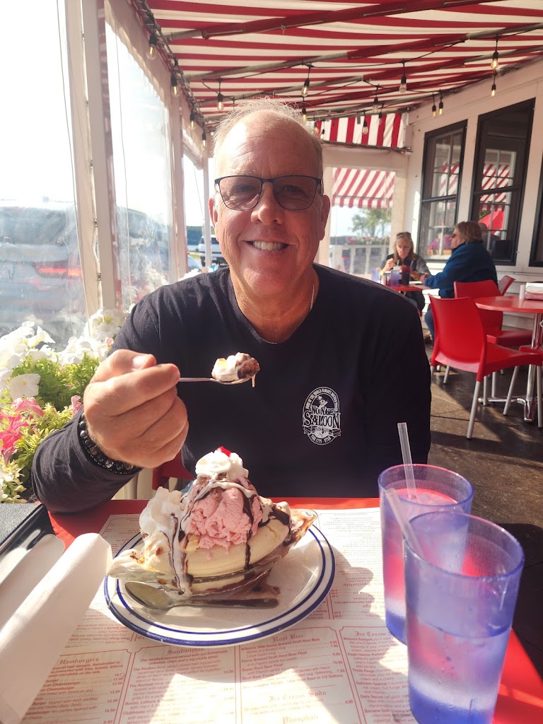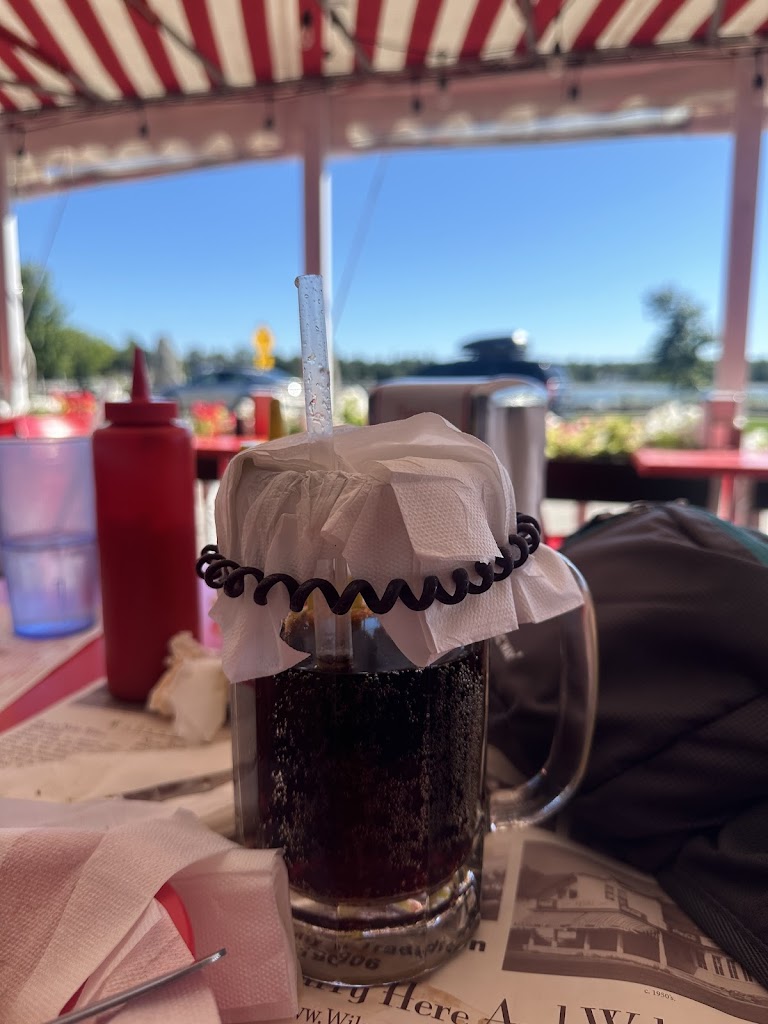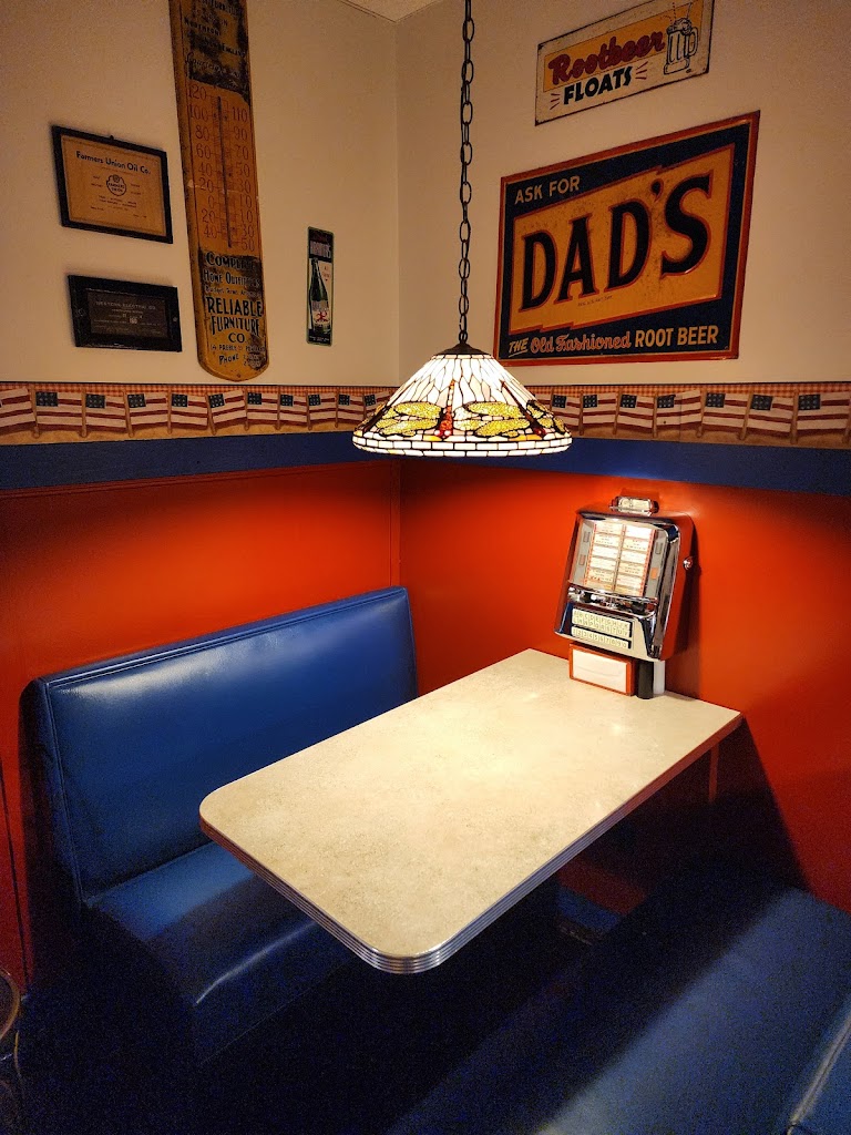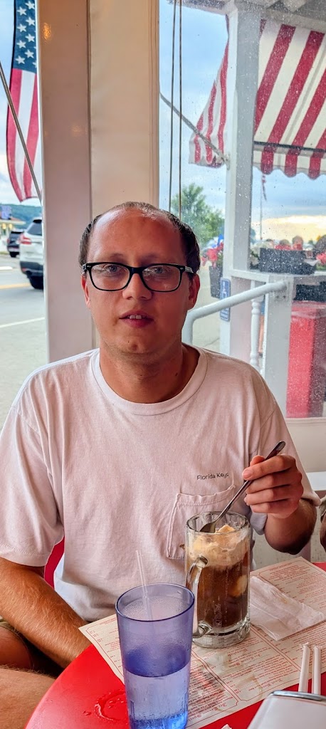 Sat on the outside patio near the road. The service was great, the food was tasty and filling, the root beer was awesome and the ice cream, awww the ice cream... We should have had the ice cream as an appetizer. It was scrumdily-iscious.