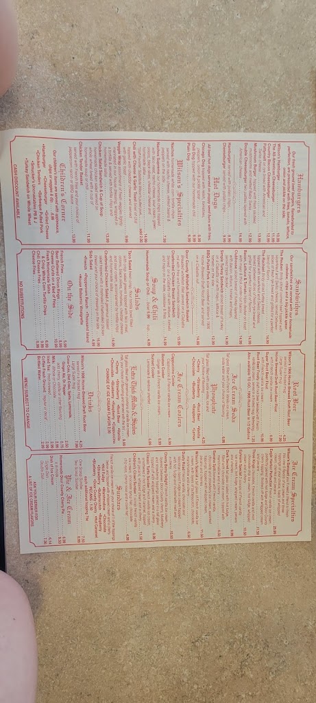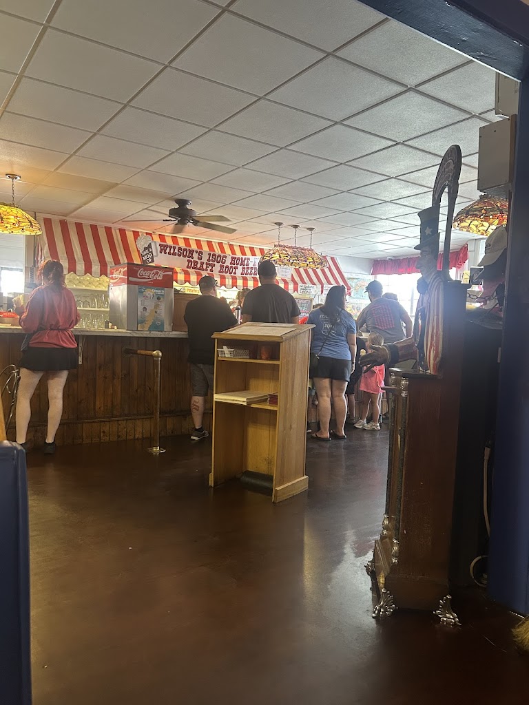 Good food, friendly people, fast service. This is a fun and friendly place. It’s always packed when we stop and today I took the chance and finally stopped. It was too crowed for my husband and son so we ordered it to go. The prices were a little more than I expected on our sundaes and drinks. But the value on their Wilson burger meal was spot on!!!! My husband said his Wilson burger was great. My son was very happy with his chili fries. It’s was more than what he expected. We will stop there again.😊