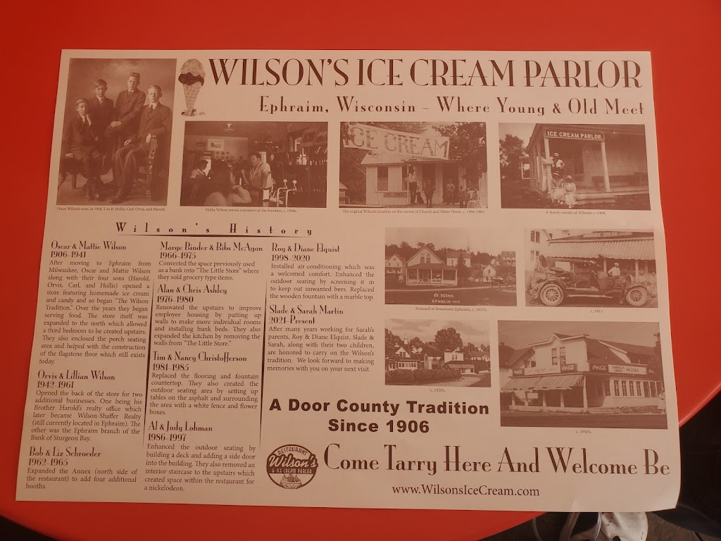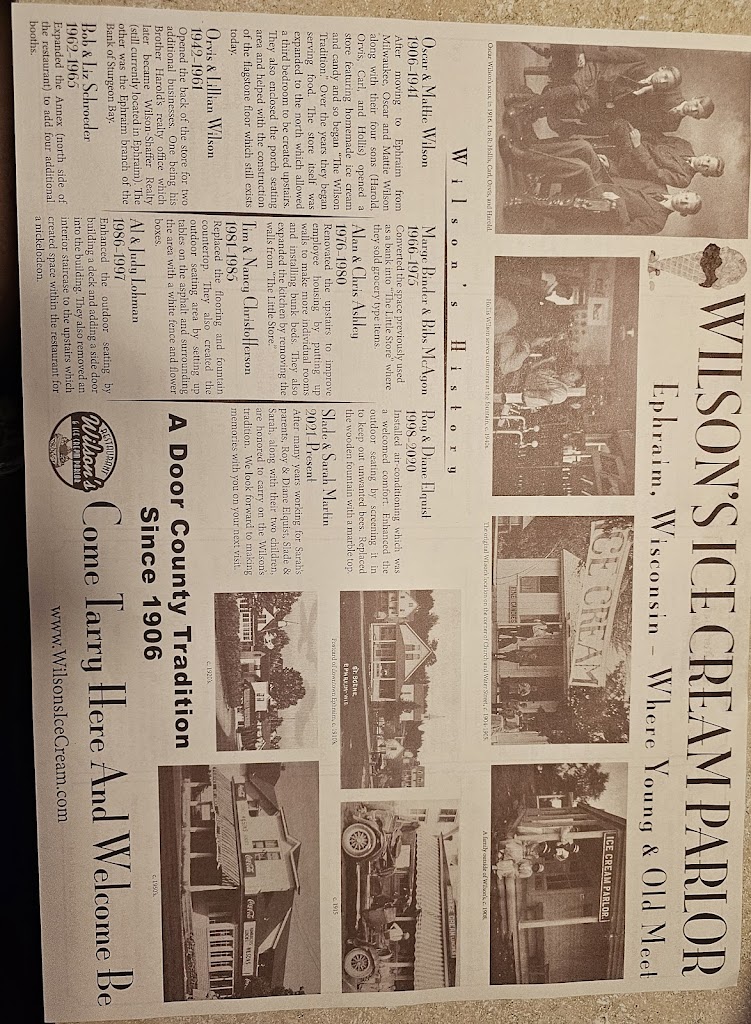 I’ve been going to Door County for the past couple years. Last year was the first time trying out Wilson’s and let me tell you it was so worth it. There is a bit of a wait as we went the end of July but the food and ice cream are worth the wait. It’s an old school diner feel and although busy the waitresses do their best to give a smile and accommodate you. I can’t wait for my trip in two weeks to eat here again. Definitely a stop worth checking out if you’re in the area.