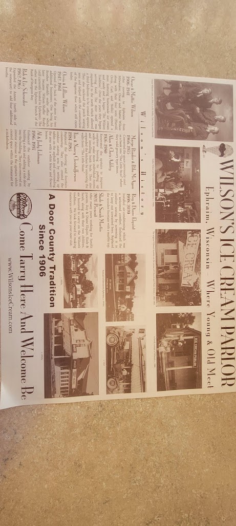 Every time we come to Door County, we have to visit Wilson's for delicious ice cream and their amazing root beer. The service is wonderful, and the food is great. When you order the single scoop, be prepared to be amazed, as it's a HUGE amount of ice cream! They also offer pup cups for your furry friends! The ambiance is so warm and friendly, lighting is perfect, and food is yummy. We always visit Wilson's when we are in Door County!