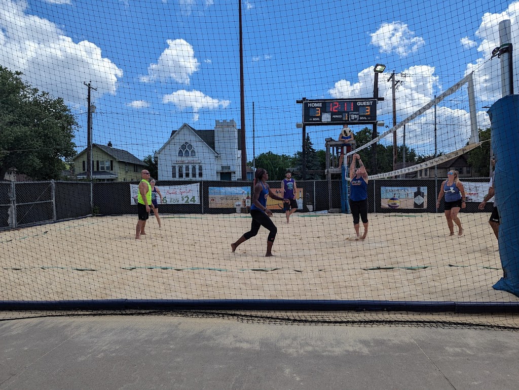 They have outdoor volleyball!! Food service depends on bartender's training and experience.