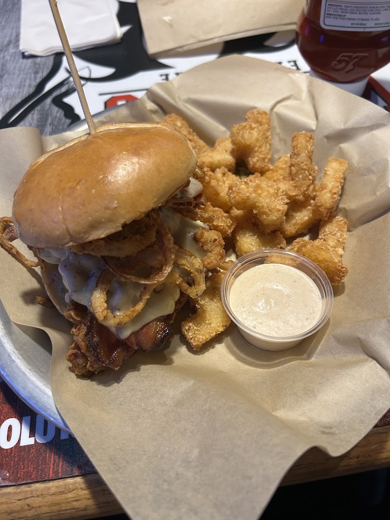 Service was friendly and knowledgeable, a little slow, but that is too be expected, everyone is understaffed since covid. The spicy chicken wrap was amazing, I can't wait to go back and have it again. The fries were also delicious and cooked perfectly. The prime rib sandwich had awesome flavor, my husband tries one every time he sees it on the menu and said this one was the best he's had yet! Highly recommend this place. We went back and had the crispy chicken melt and the Nashville hot chicken sandwich. Both were delicious!