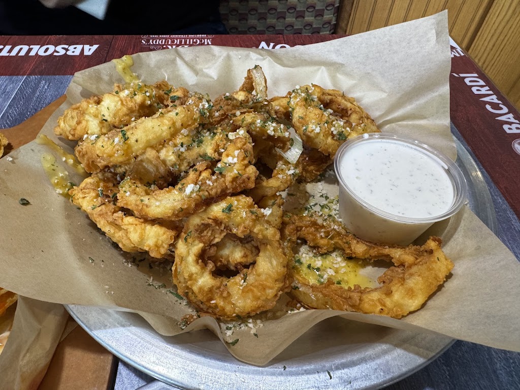 The food was mostly good and the waiter was okay, but service was very slow and disorganized. We were seated and then ignored for 40 minutes, while other tables were helped. My beer cheese soup came out cold and wasn’t very good. My chicken bacon ranch wrap had unexpected pizza sauce on it. And my wife’s margarita was forgotten.