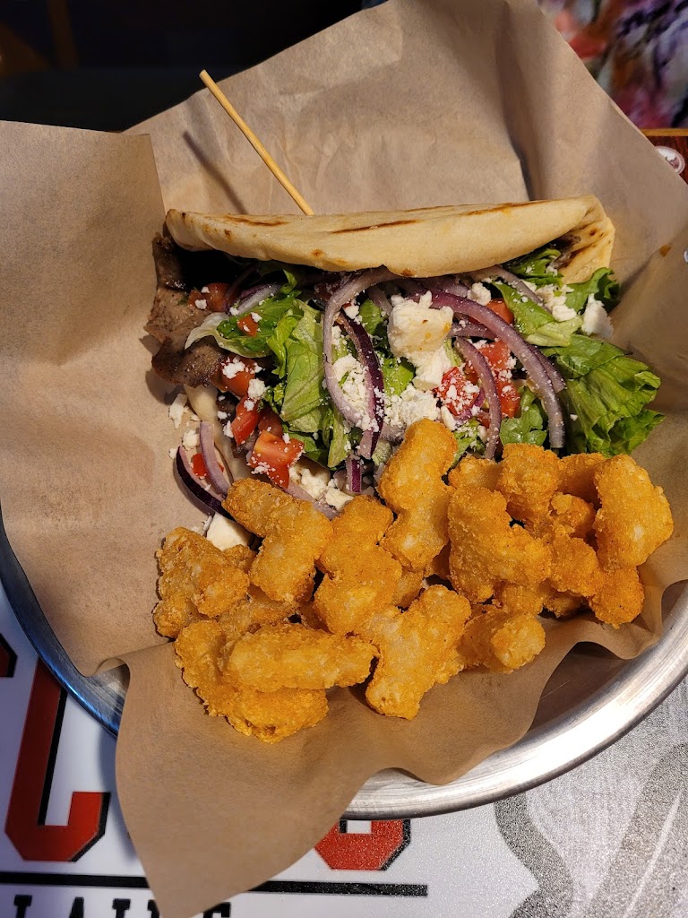 We ordered the pretzel bites, and they were okay, but the cheese sauce was not very good. My husband had beer cheese soup that was COLD! His chicken, bacon, ranch wrap had pizza sauce splattered on the bottom of it… My gyro & sweet potato fries were great, I will say.
