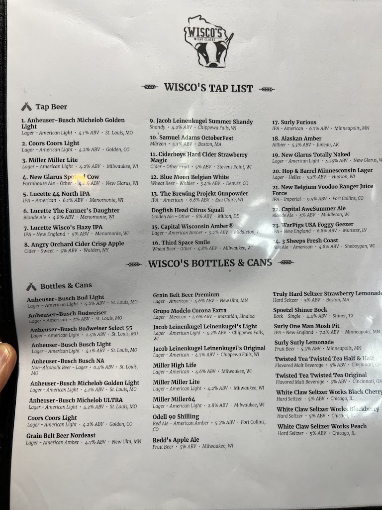 Went to Wisco bar and eatery with the family for lunch, it was decently busy. We were seated right away but sat for 20 minutes and no one served us. We watched five other families come in and get seated and served right away. We got up and left, as we walked out we told the hostess why we were leaving and she was very snotty about and just said “ok” and laughed. Good way to lose a 75 dollar food order. We then went and spent that at Milwaukee Burger Company. We were seated and served right away. They were so busy but were so fast about everything and so nice.