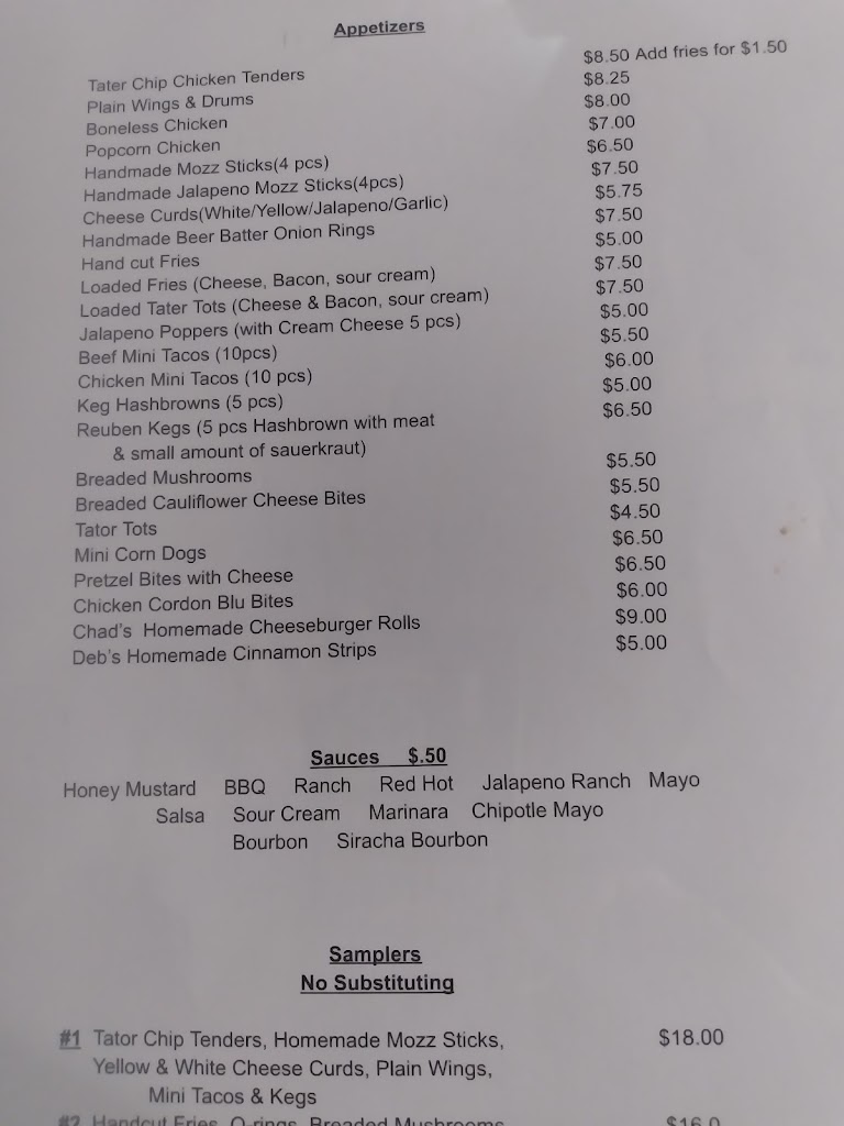 Great food at a awesome price..and Sam the bartender is a terrific lady