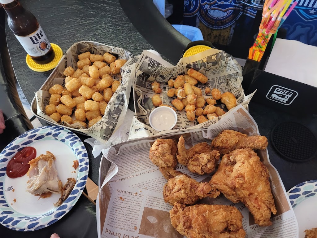 Great food. We had pizza, fries, and the broasted chicken. It was all great.