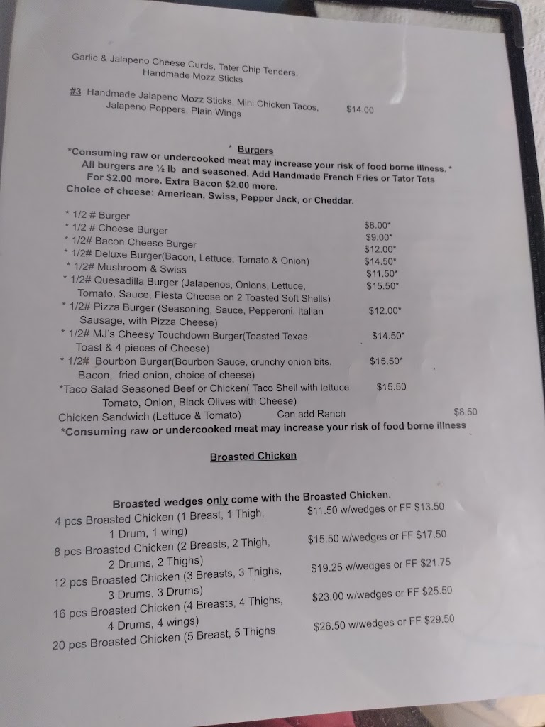 Only thing good about this place is we got our money back for the food.. bartender was to busy playing on her phone to take care of customers. I was excited to try their burgers.. sub par at best.. fry's look burnt but mushy as all hell..also when is it necessary to say we want our appetizers before we want our main meal.. expect to wait and be disappointed.. by the way when someone asks for a pizza to go... Make sure the oven is plugged we waited 45 and left cuz it wasn't even cooked..