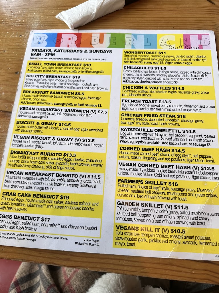 Wonderland is what Comet Cafe used to be. Great food, made well and from scratch. Fantastic dinner options and their brunch is top tier.